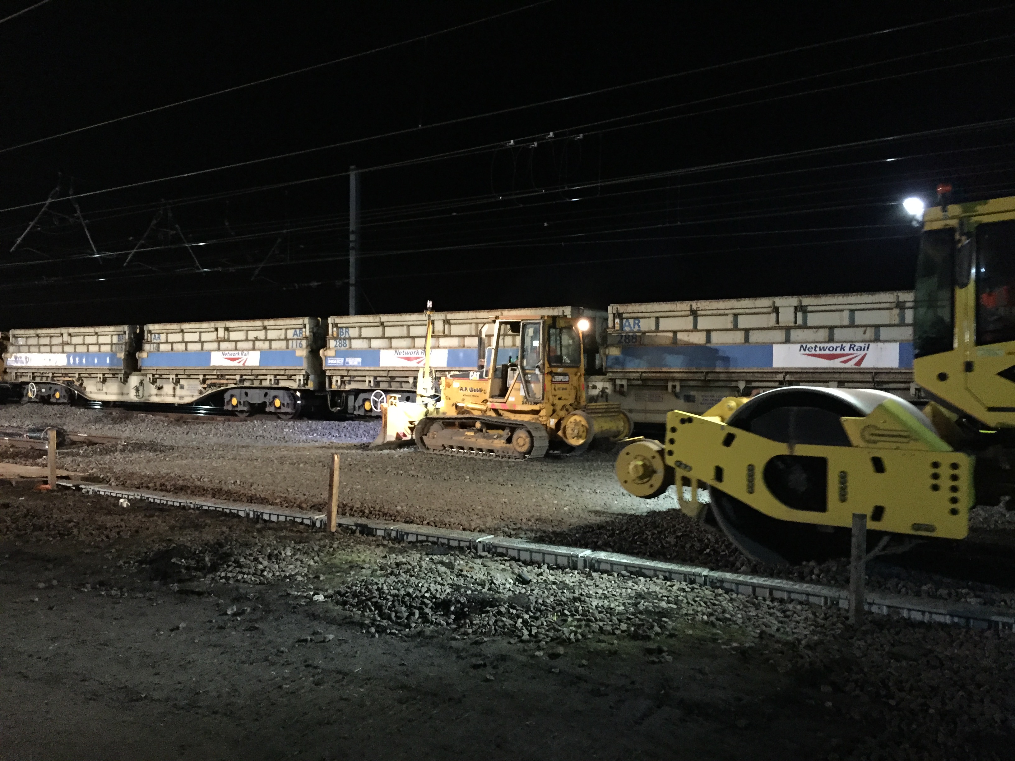 But at Sandy, for the first time in history, a pair of engineering trains were joined together connected by an umbilical and ran in parallel to simultaneously deliver tamping and dynamic track stabilisation (DTS) which simulated the equivalent of 200 trains passing over the tracks consecutively. Passenger trains were then able to start using the railway at speeds as high as 125mph as soon as the engineering team had finished because the track and ballast were firmly ‘bedded in’ – which meant Network Rail avoided thousands of pounds in compensation payments.