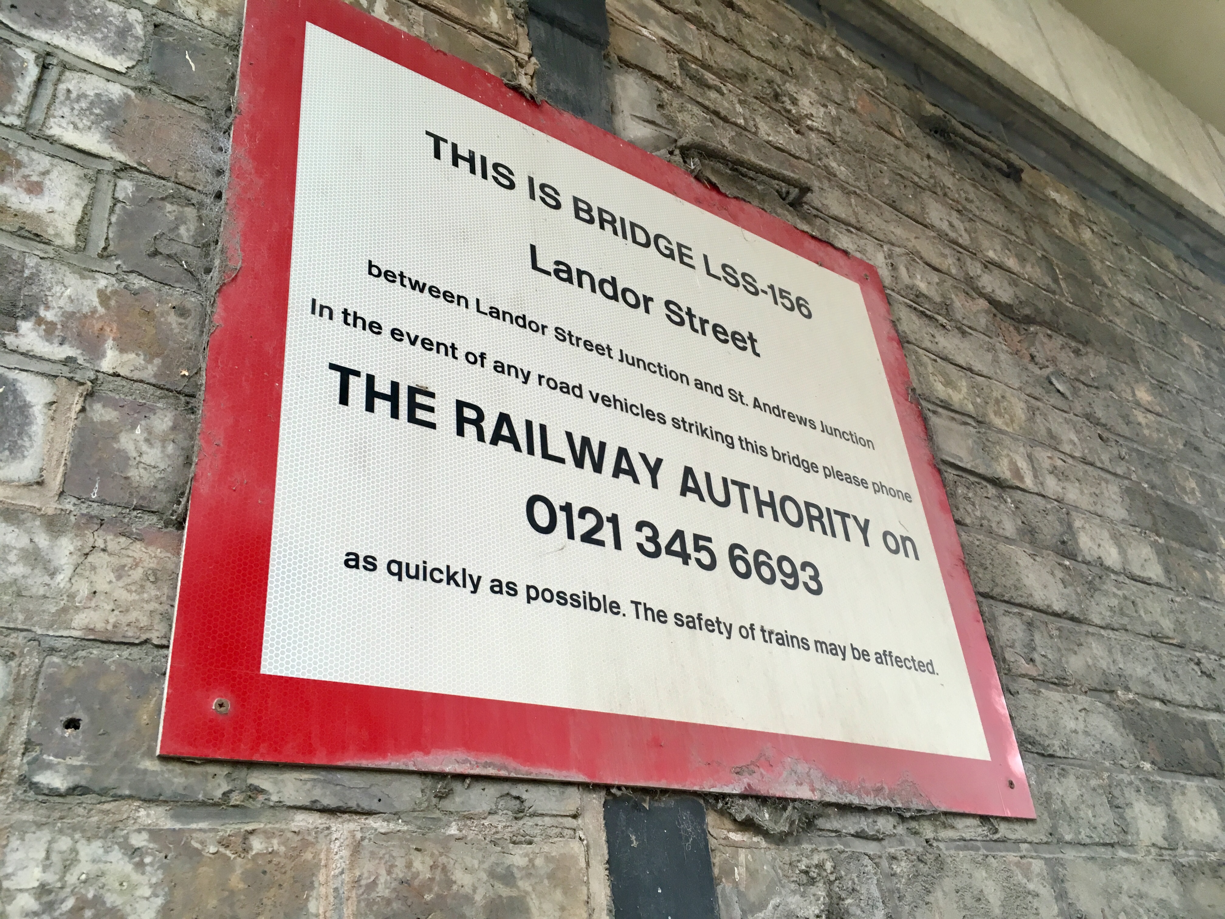 Sign on Landor Street bridge