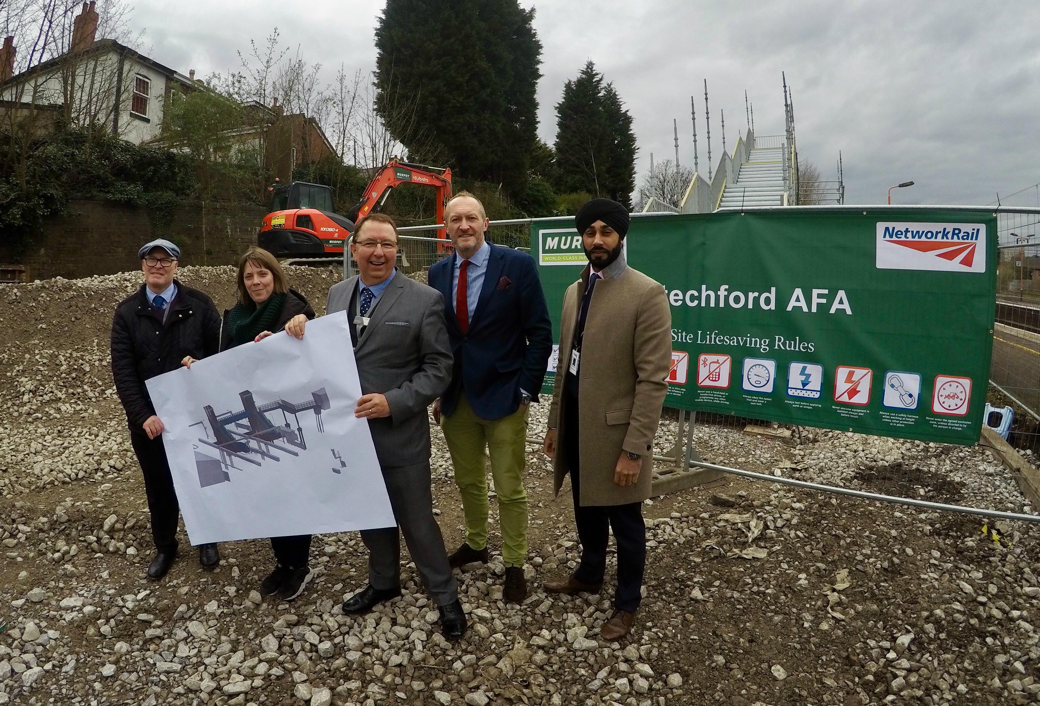 R-L Harpreet Singh Moore (Scheme project manager, Network Rail), Steve Leyland (West Midlands Stations Alliance), Francis Thomas (Head of corporate affairs, West Midlands Railway), Jess Phillips MP (Birmingham Yardley), Michael Byrne (West Midlands Trains)