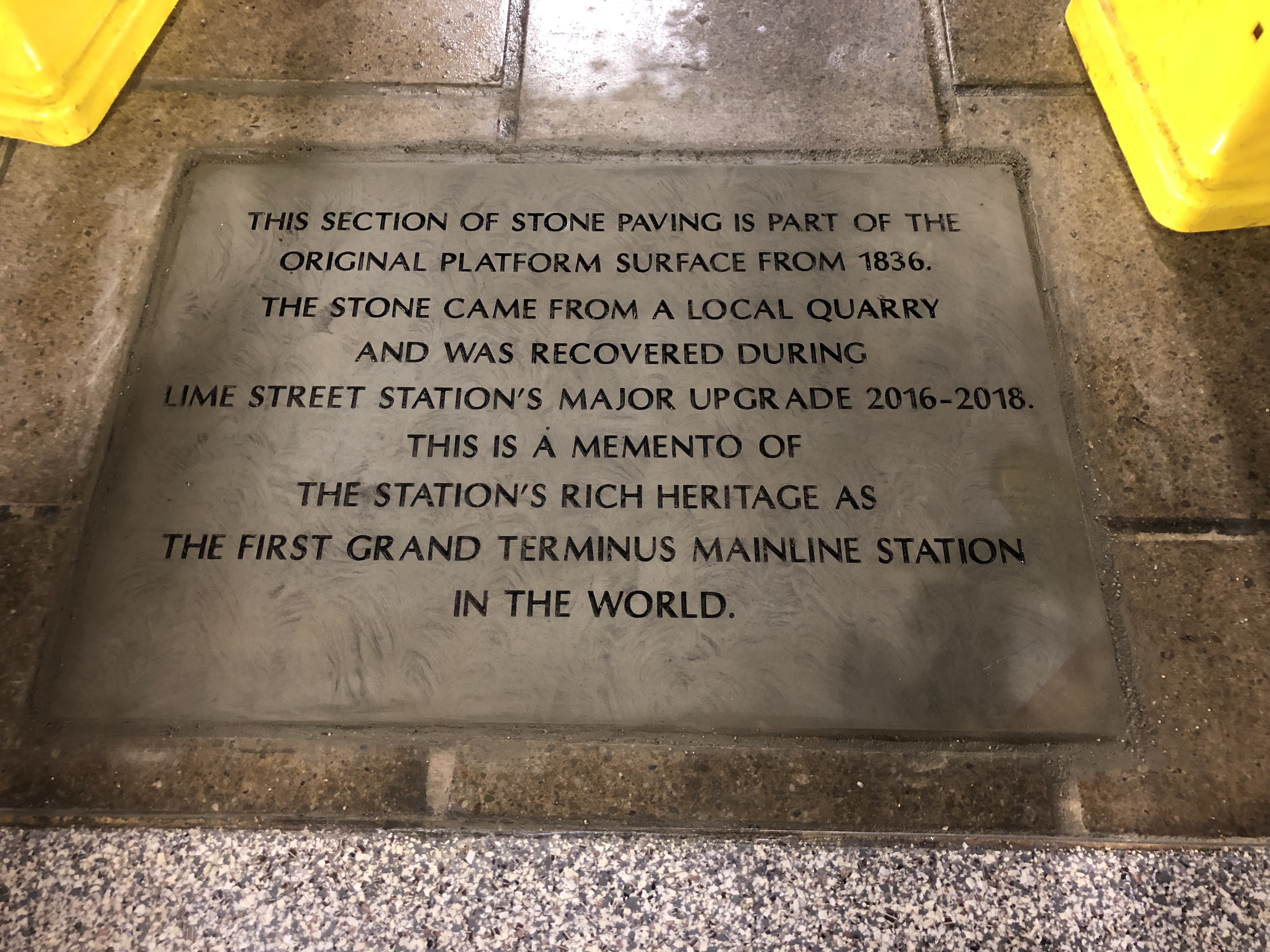 Yorkstone paving slab inscription at Lime Street Station