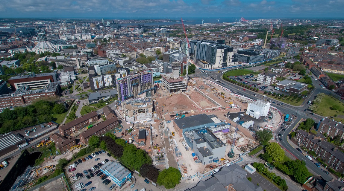Aerial view of the construction site near Liverpool Lime Street station