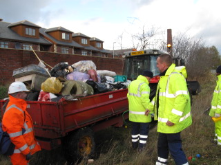 A trailer loaded with collected rubbish