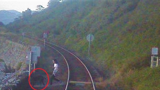 Near miss2 31st July Harlech Cliffs man and dog circle-2