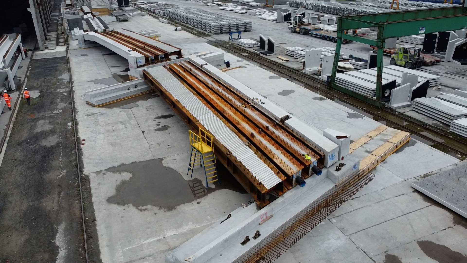Drone shot of two thirds of Greek Street bridge assembled in Ireland.jpg