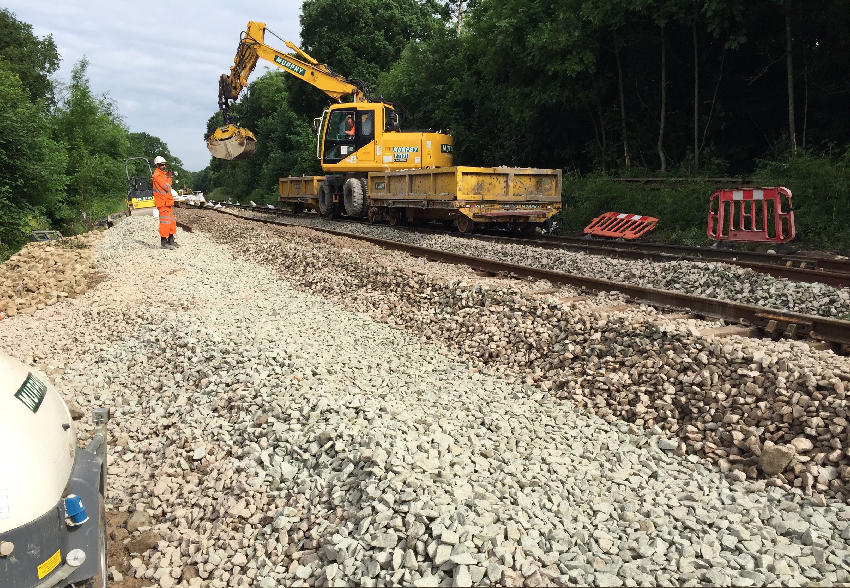 A Road Rail Vehicle working on the site of the landslip at Middlewood-2