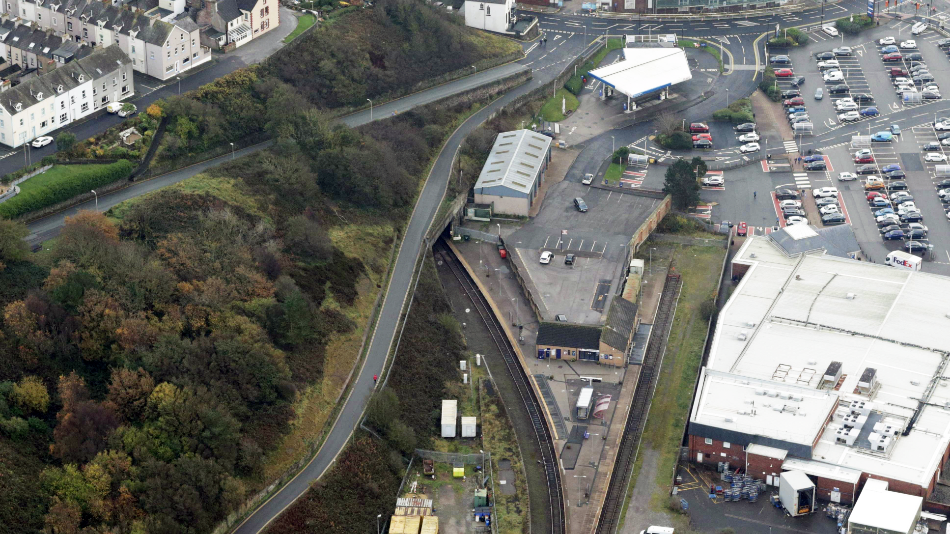 Aerial shot of Whitehaven station and Northern tunnel portal