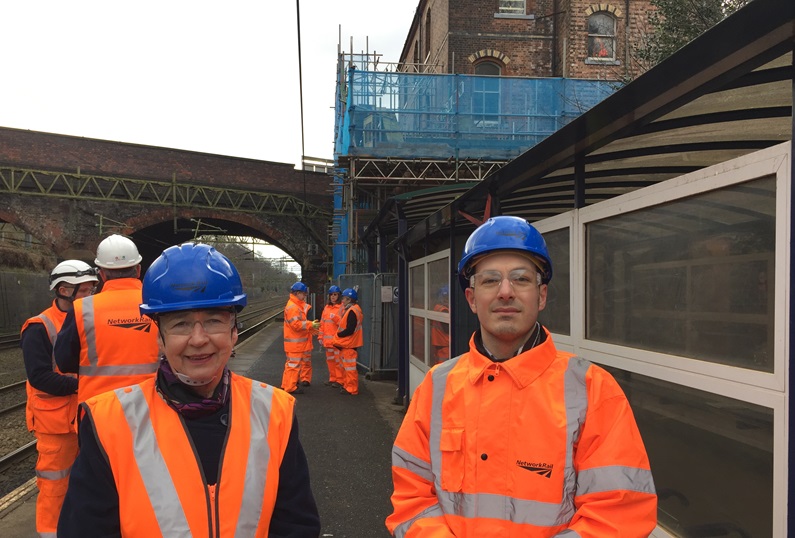 Ann Coffey MP and Cllr Alex Ganotis of Stockport Council at Heaton Chapel station