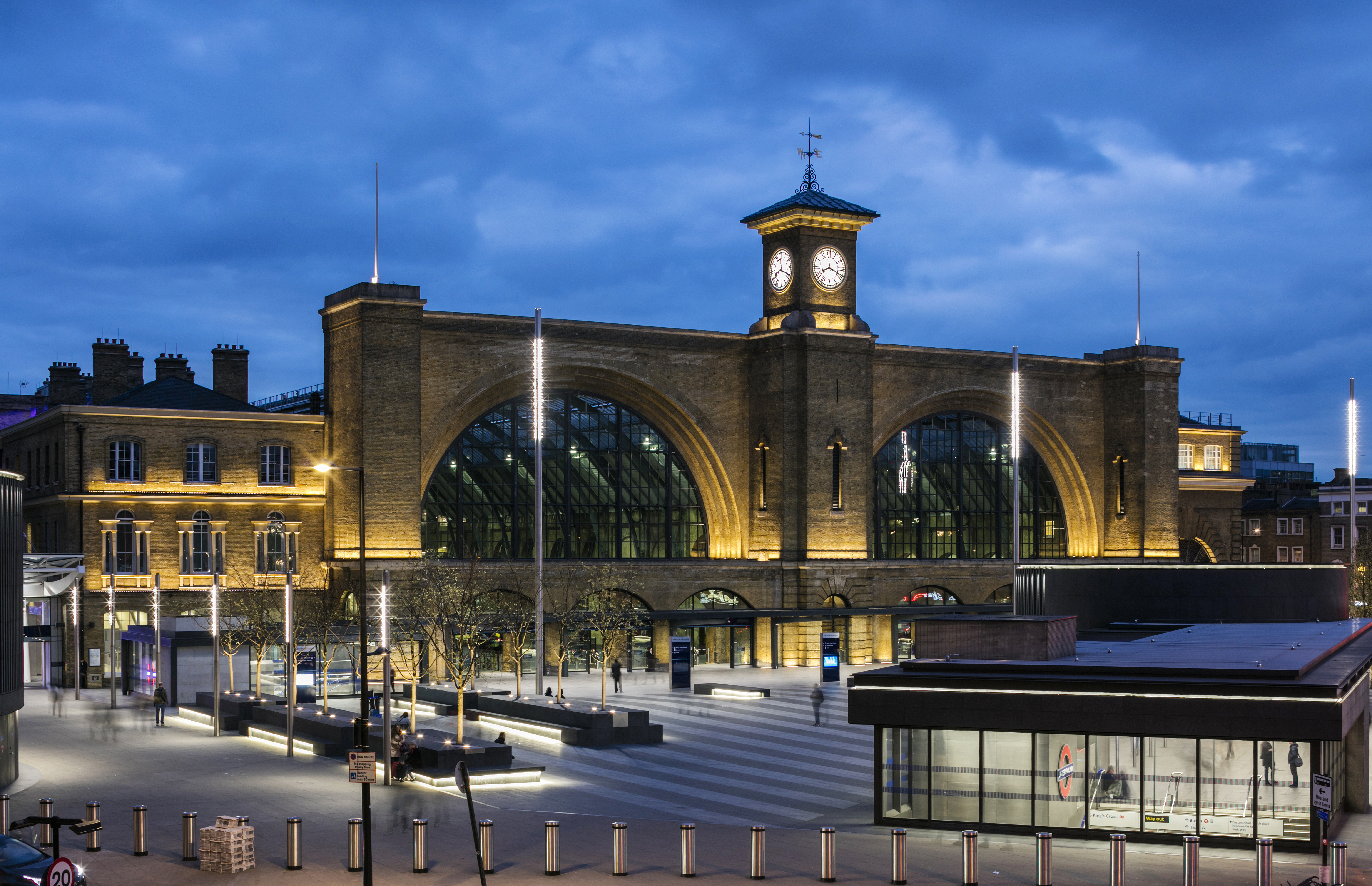 King's cross railway station clock tower king's square train station busy people crowds night