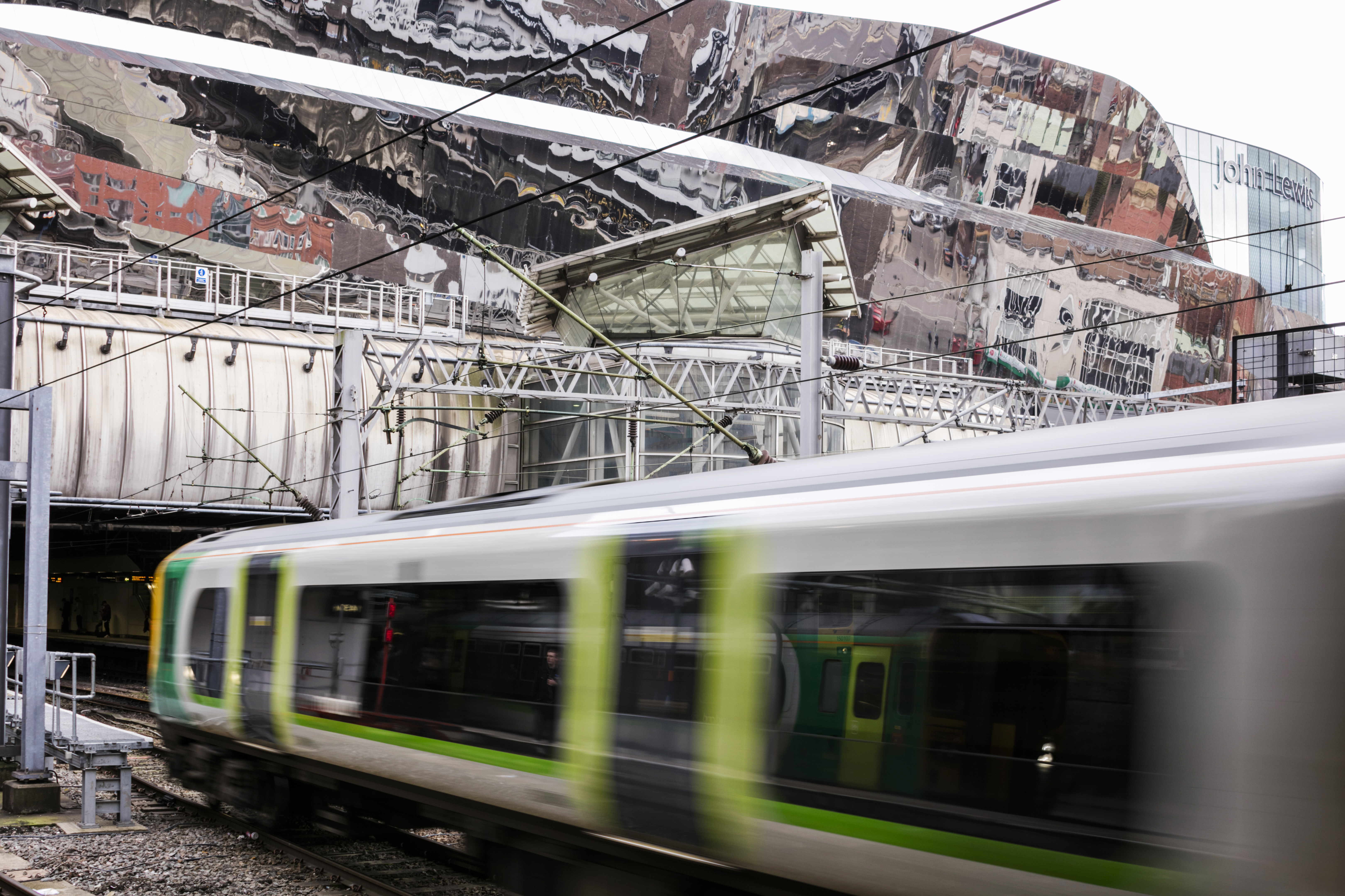Birmingham New Street railway station train station Grand Central Shopping centre train platform mirrored roof