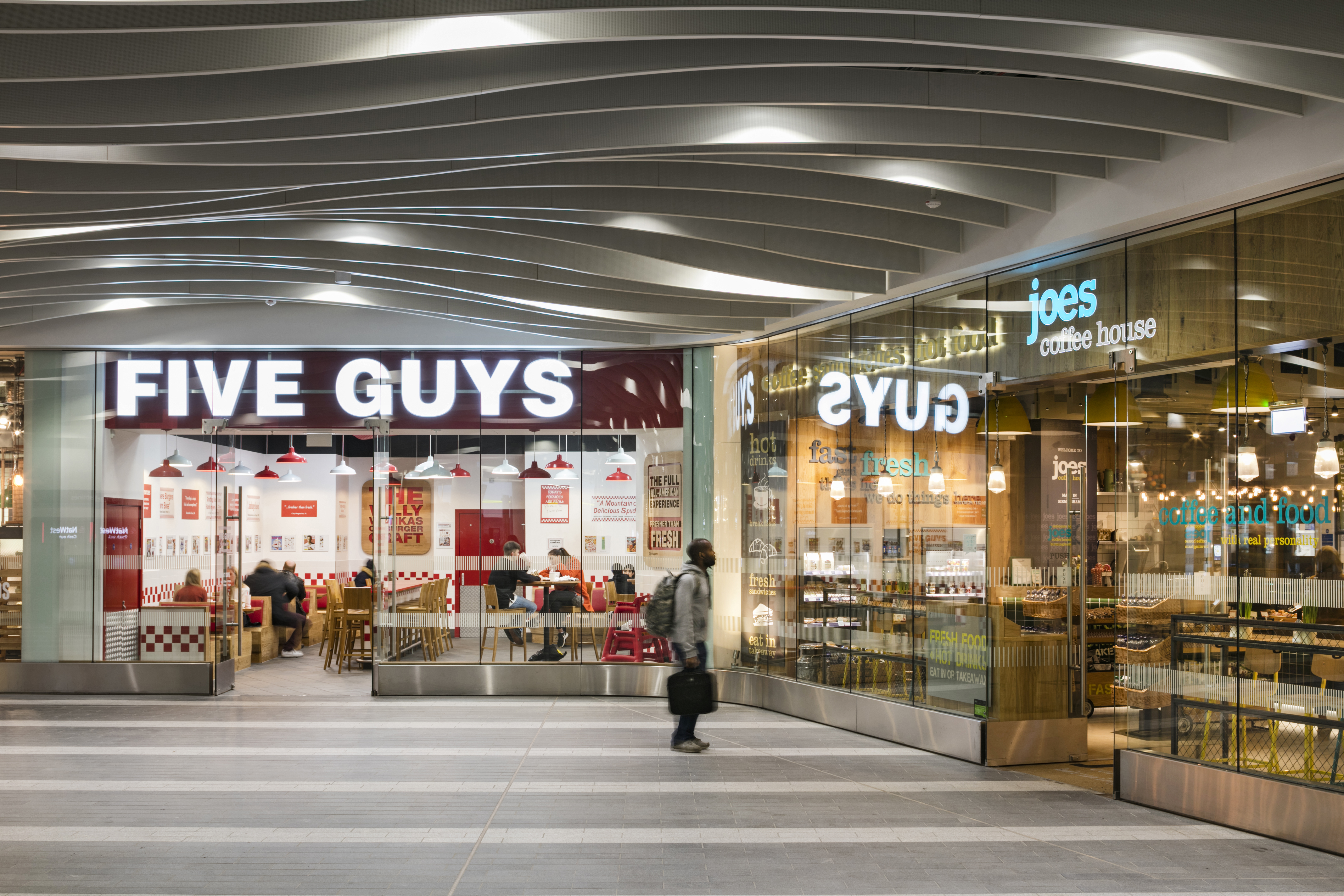 Birmingham New Street - FIve Guys, Joes coffee House