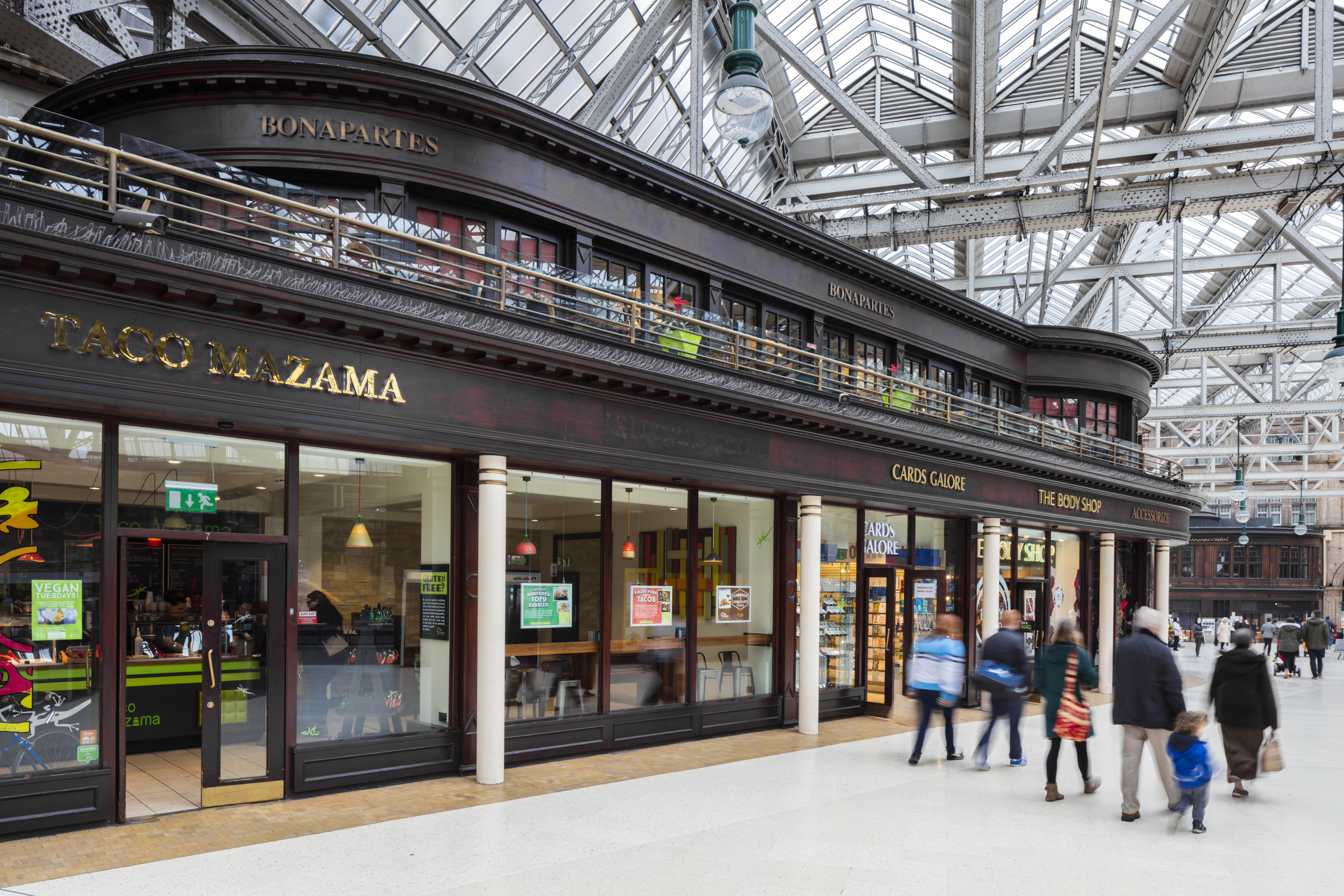 Glasgow Central railway station train station retail shops shopping crowds