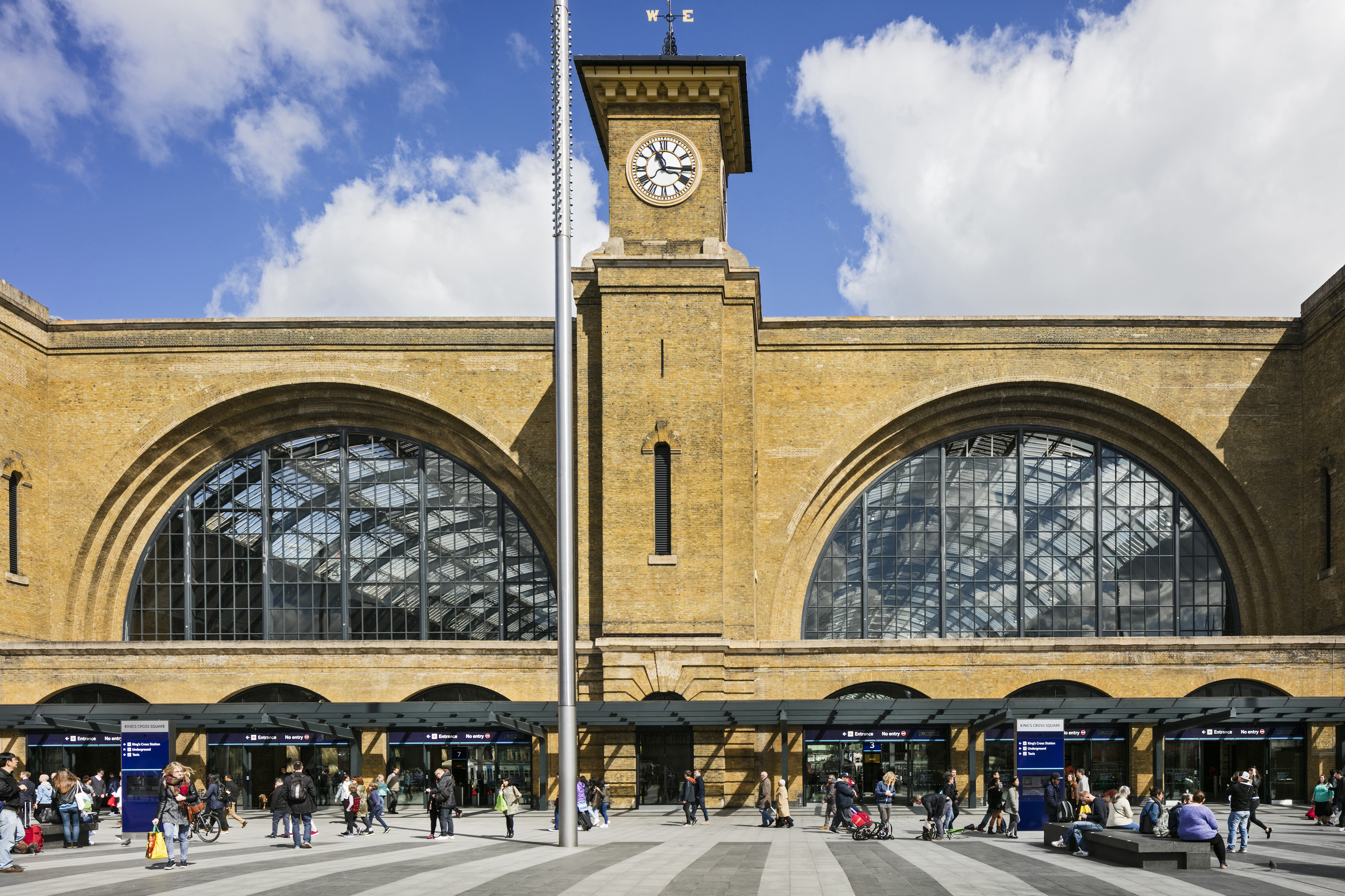 King's cross railway station clock tower king's square train station busy people crowds day