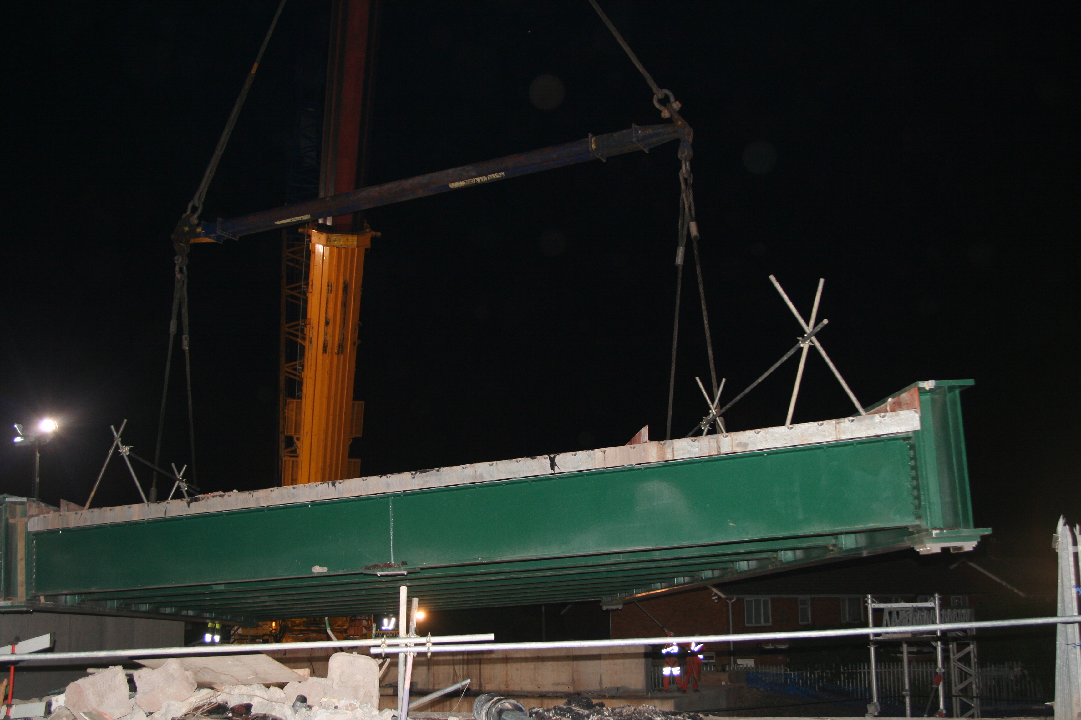 The temporary bridge at Armitage with Handsacre is lifted out by a 1000 tonne crane in the early hours of 15 July 2007