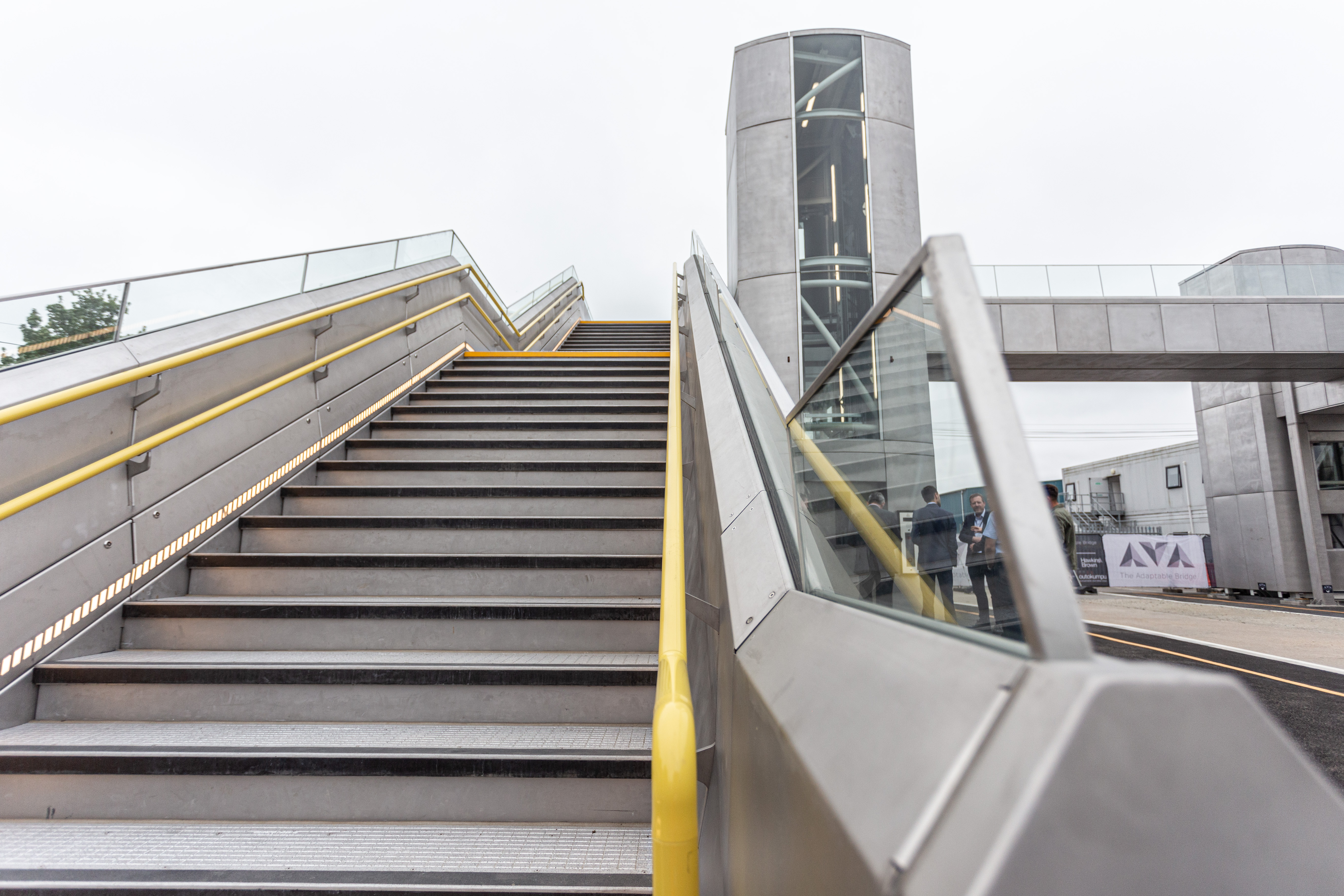 Staircase and lift in the AVA bridge at McNealy-Brown's yard in Kent