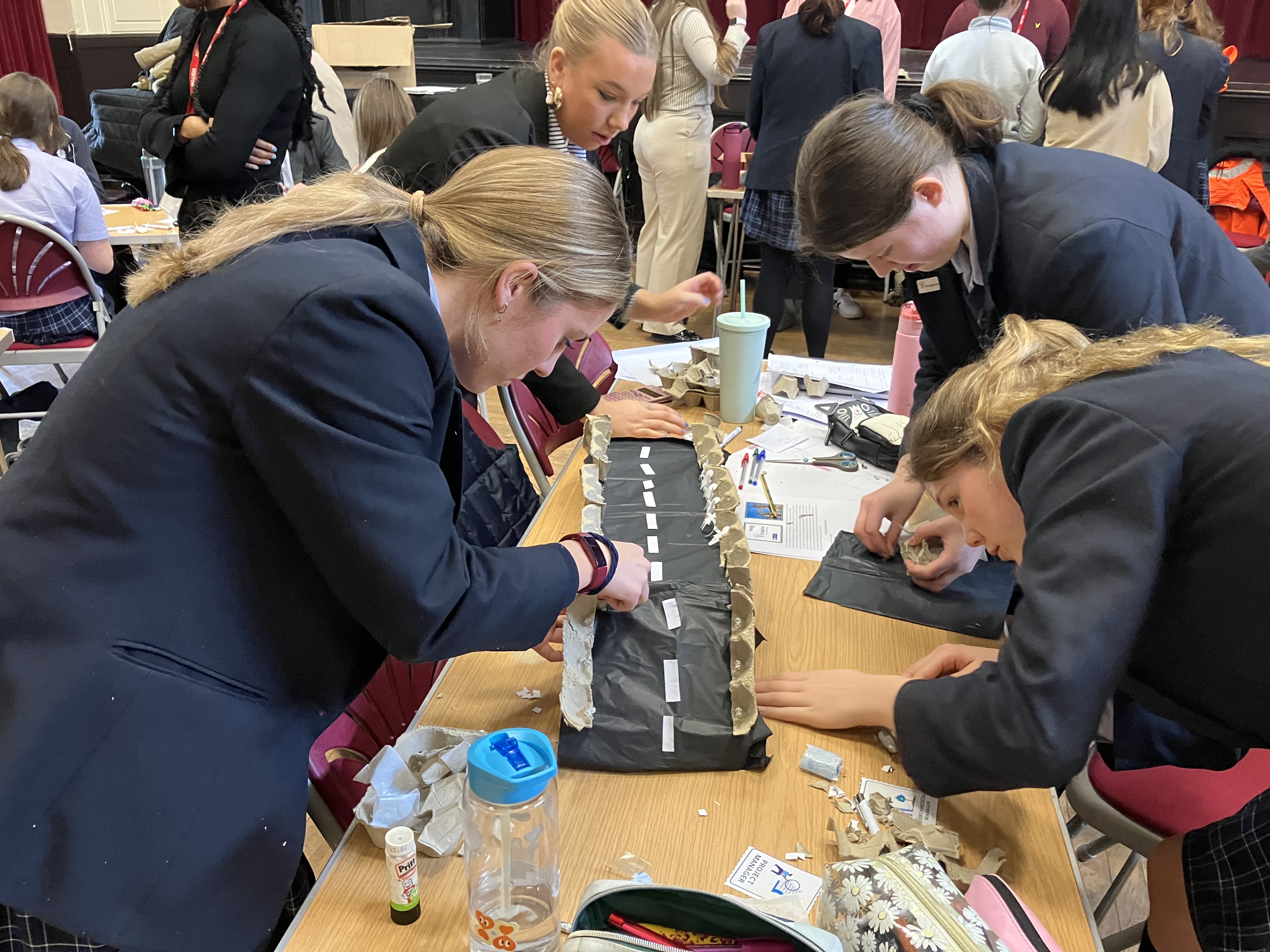 Students at The Mount School constructing their bridge design at a Network Rail STEM day for IWD 2