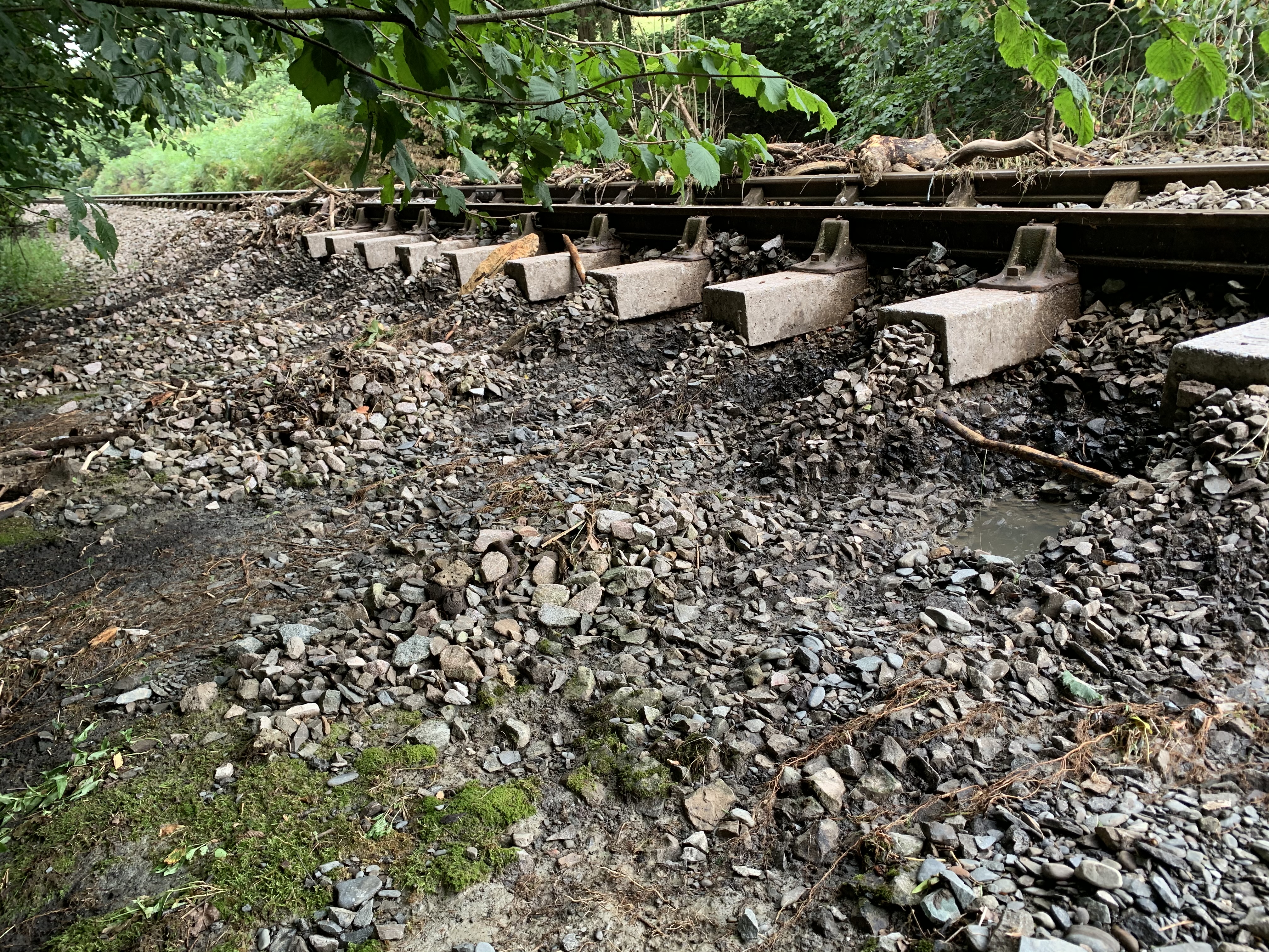 Ballast has been washed away in some areas