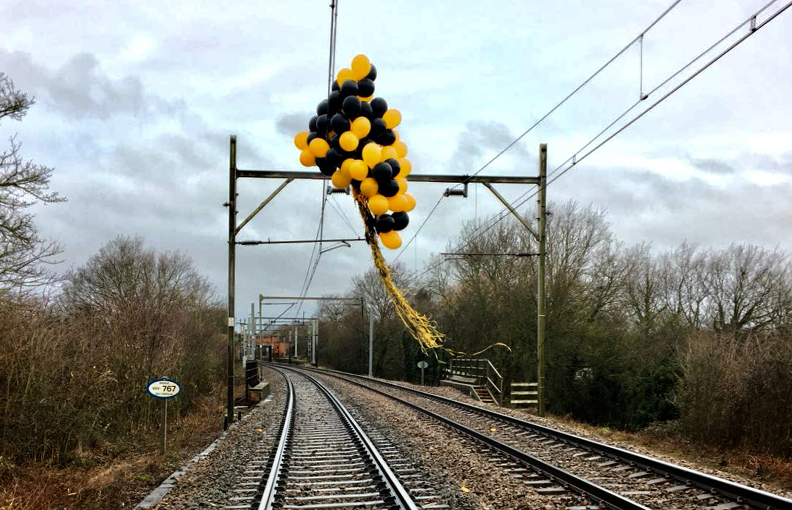 Balloons wrapped around overhead electric lines Southend February 2018