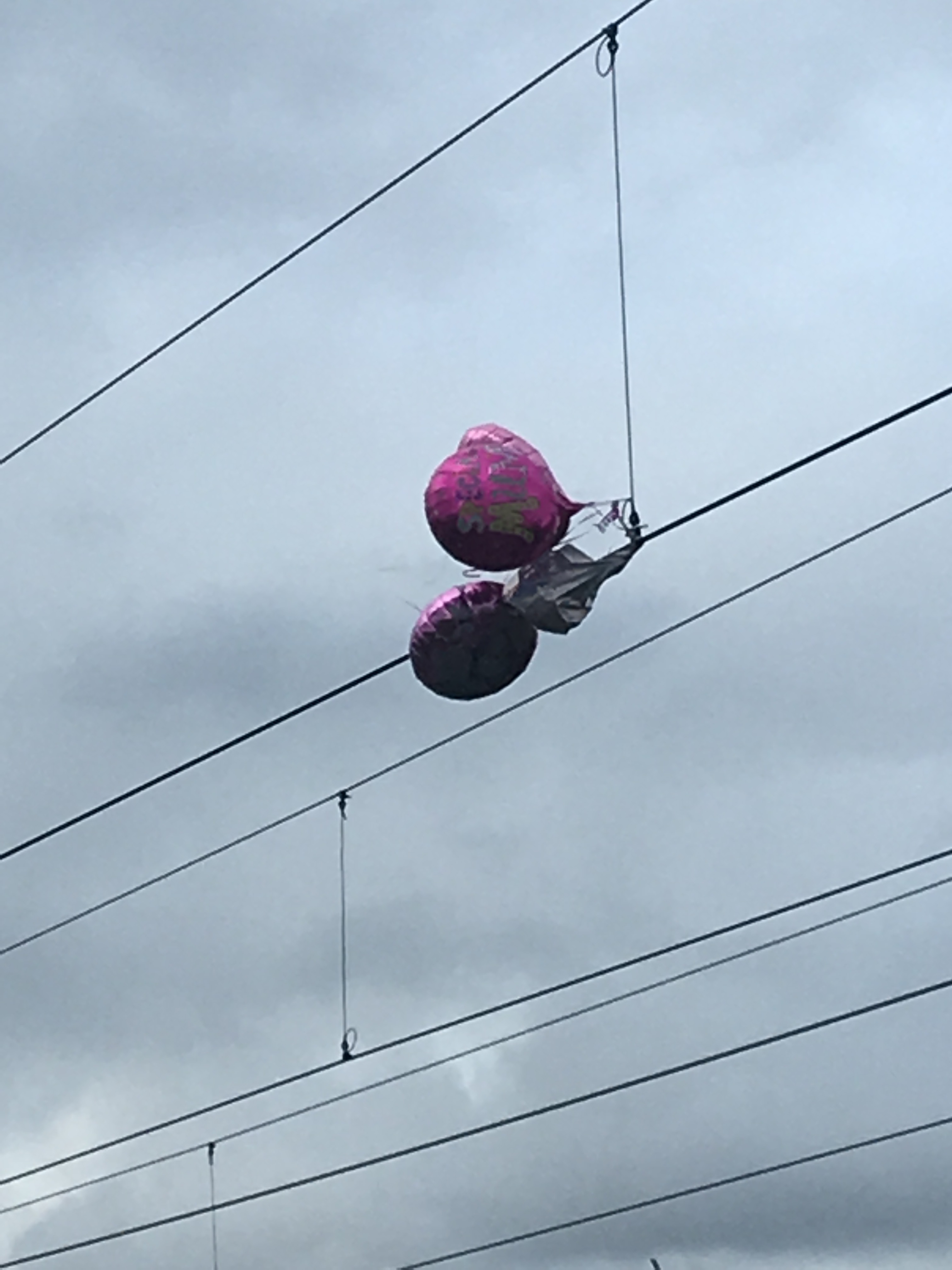 Balloons on overhead electric lines at Linslade Tunnels Bedfordshire April 2019