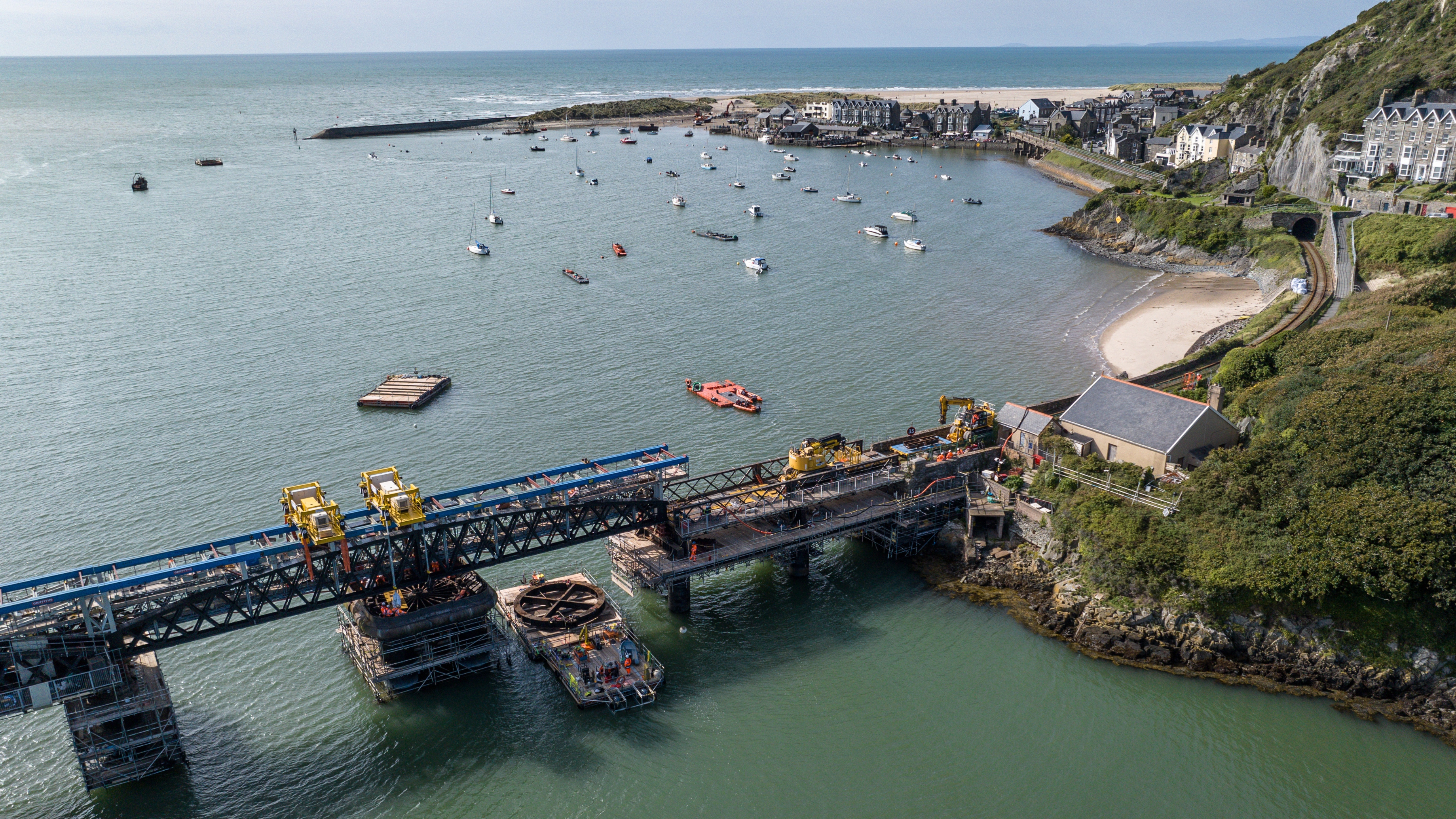Barmouth viaduct work drone shot