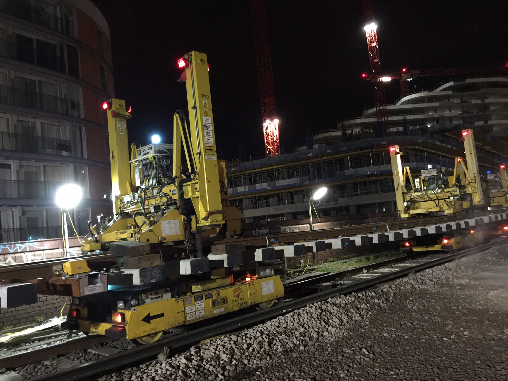 Battersea - track panels are moved into position using moveable gantires called PEM LEMs