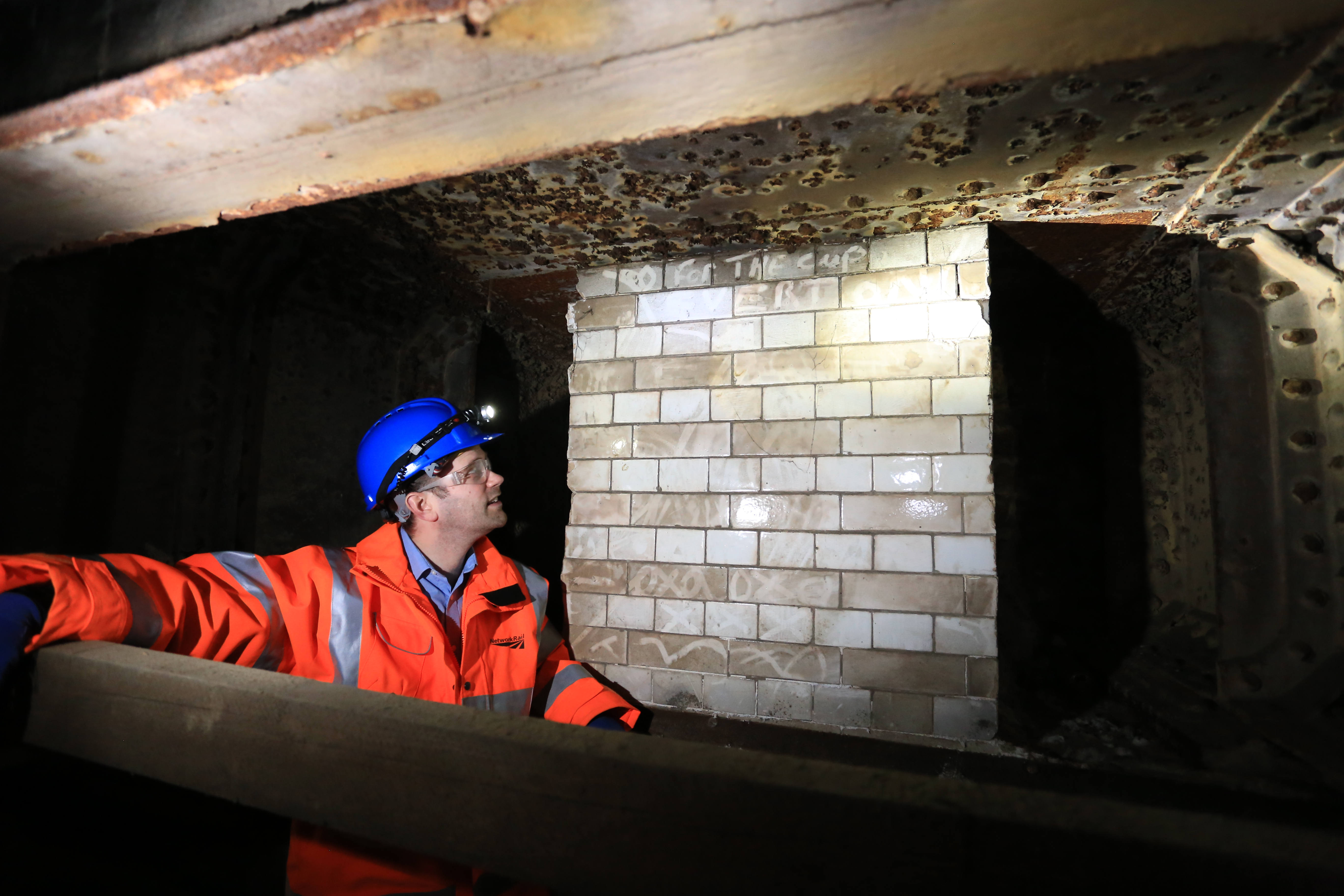 Greg Thornett, Project Manager, looks at the remains of Southwark Park station, hidden in the catacombs under the railway in Bermondsey. Being rebuilt as part of the Thameslink Programme