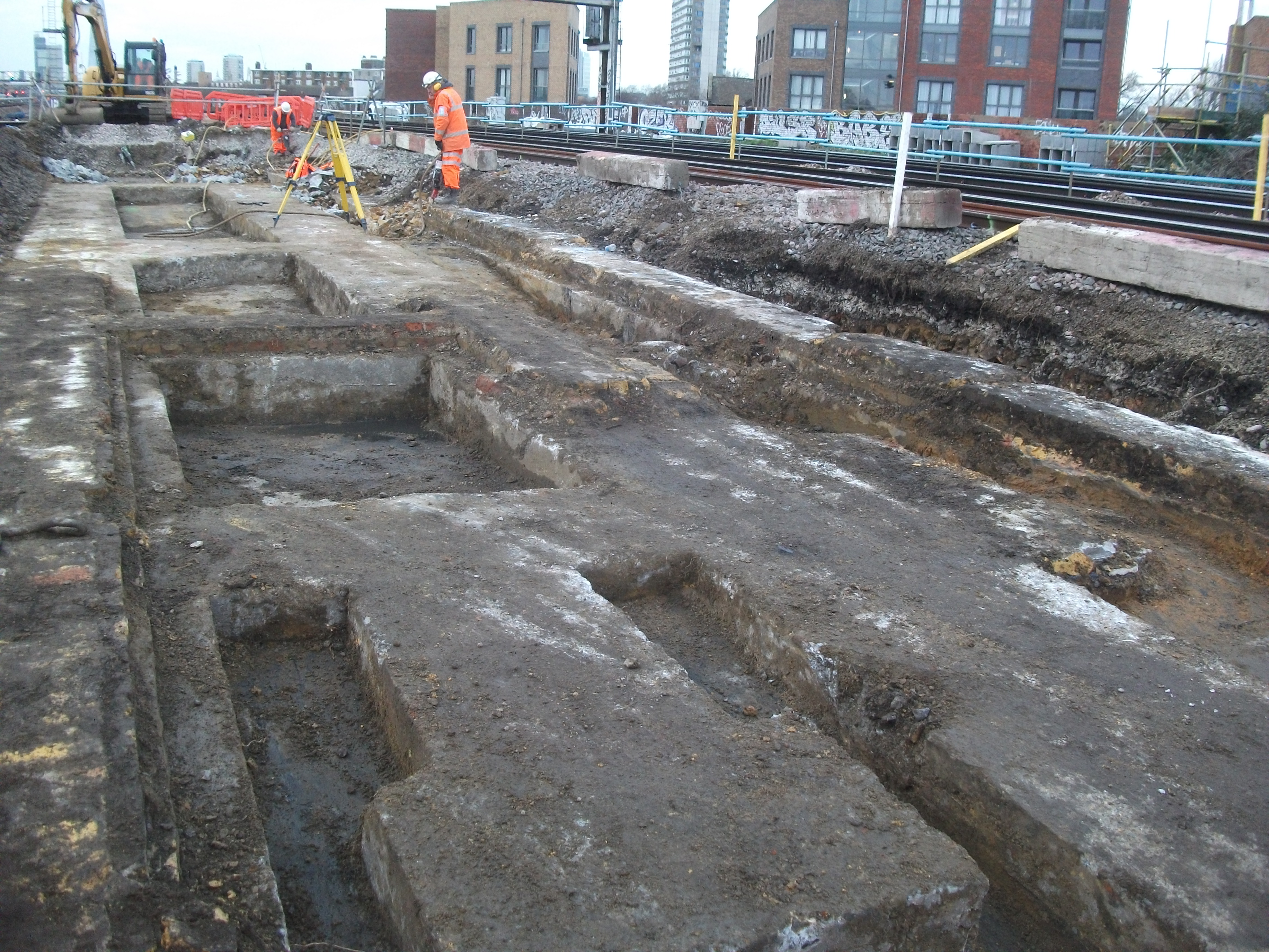 Old platform footings uncovered from the long-lost Southwark Park station. Uncoveredt as part of the Thameslink Programme