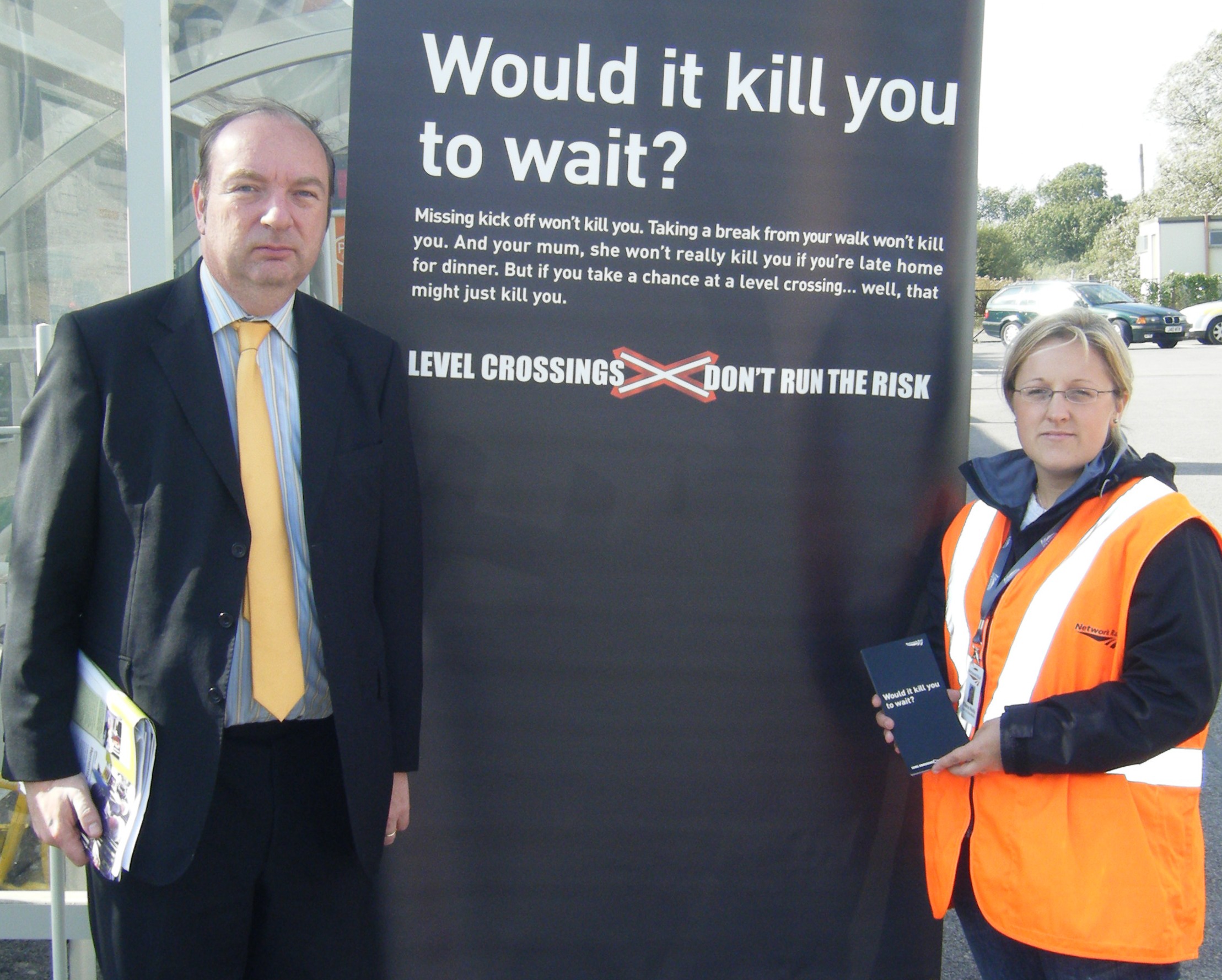 From left: Norman Baker, MP for Lewes and Lib Dem shadow transport secretarty: Ellie Reilly, community safety manager, Network Rail.