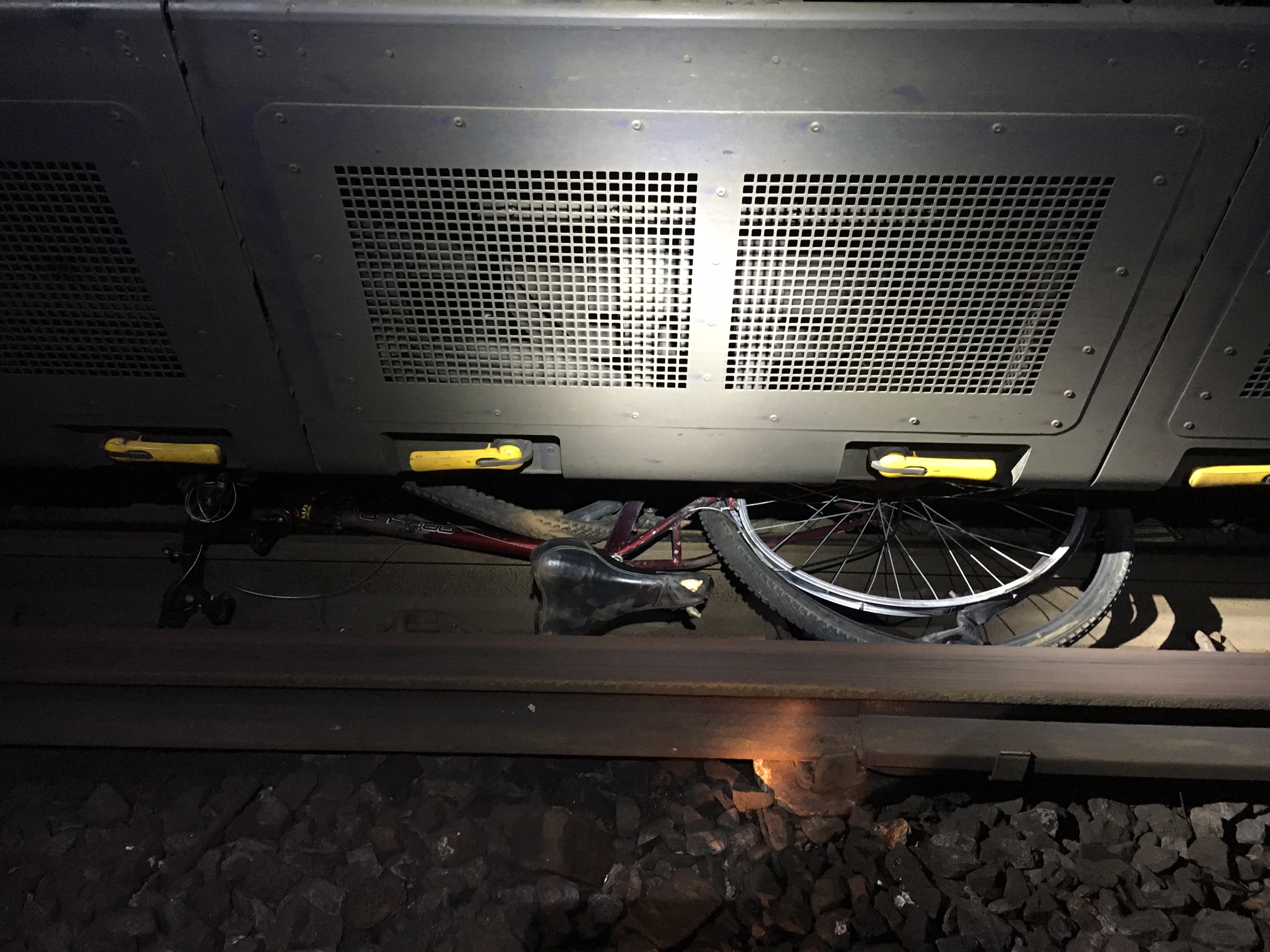 Bicycle jammed under train, Gravesend