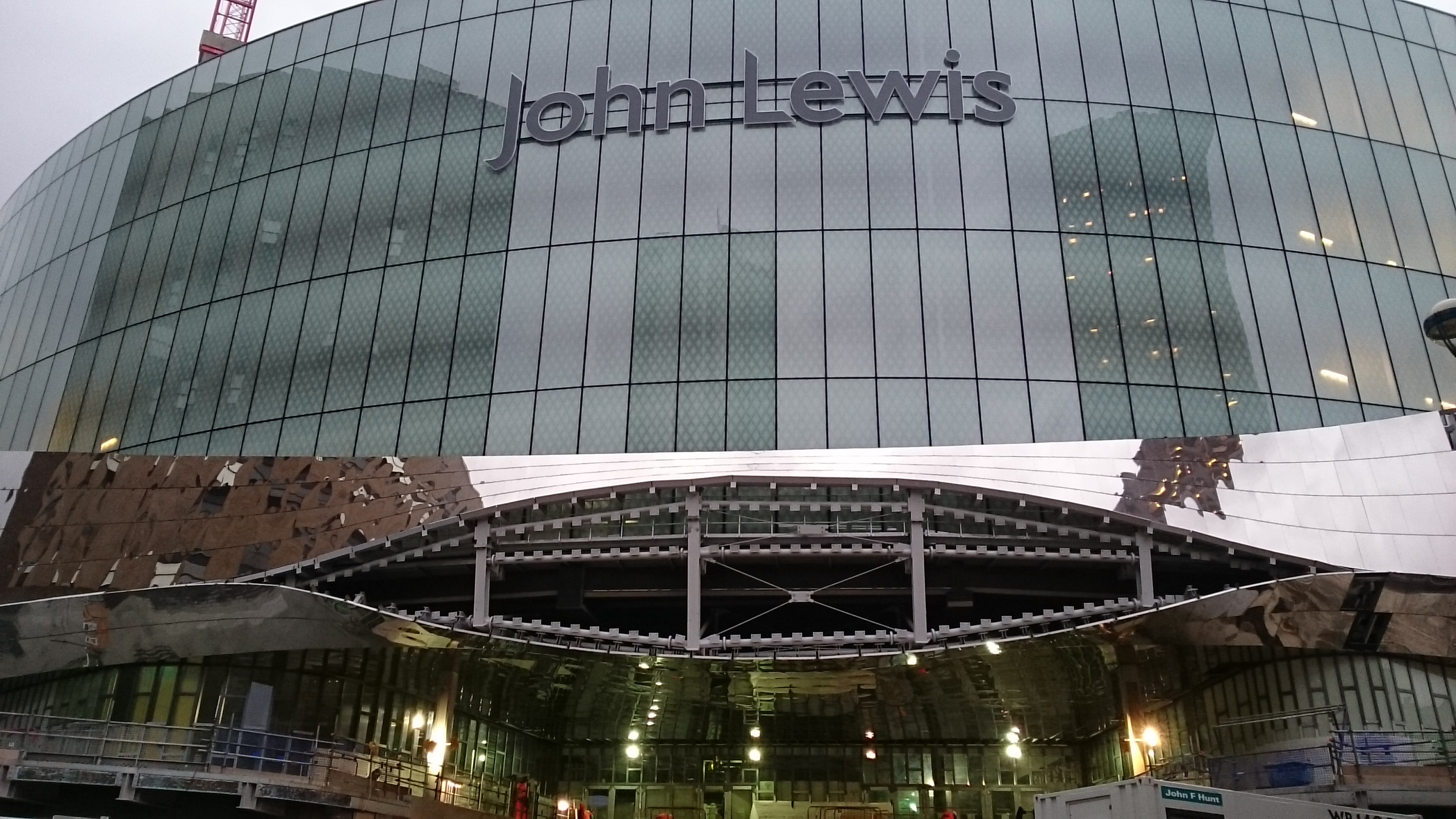 The media eye above the new entrance to Birmingham New Street station on Hill Street / Station Street