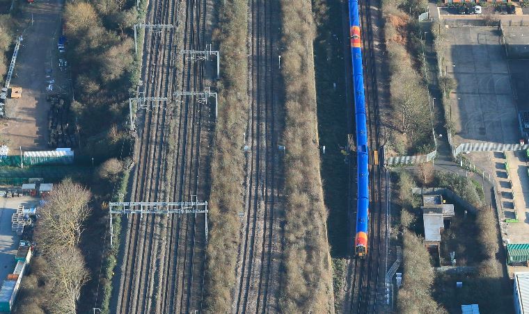 Biscuit Tunnel runs across the middle of the picture, with the right hand (southern) bridge deck being replaced this weekend. Picture: Network Rail Air Ops