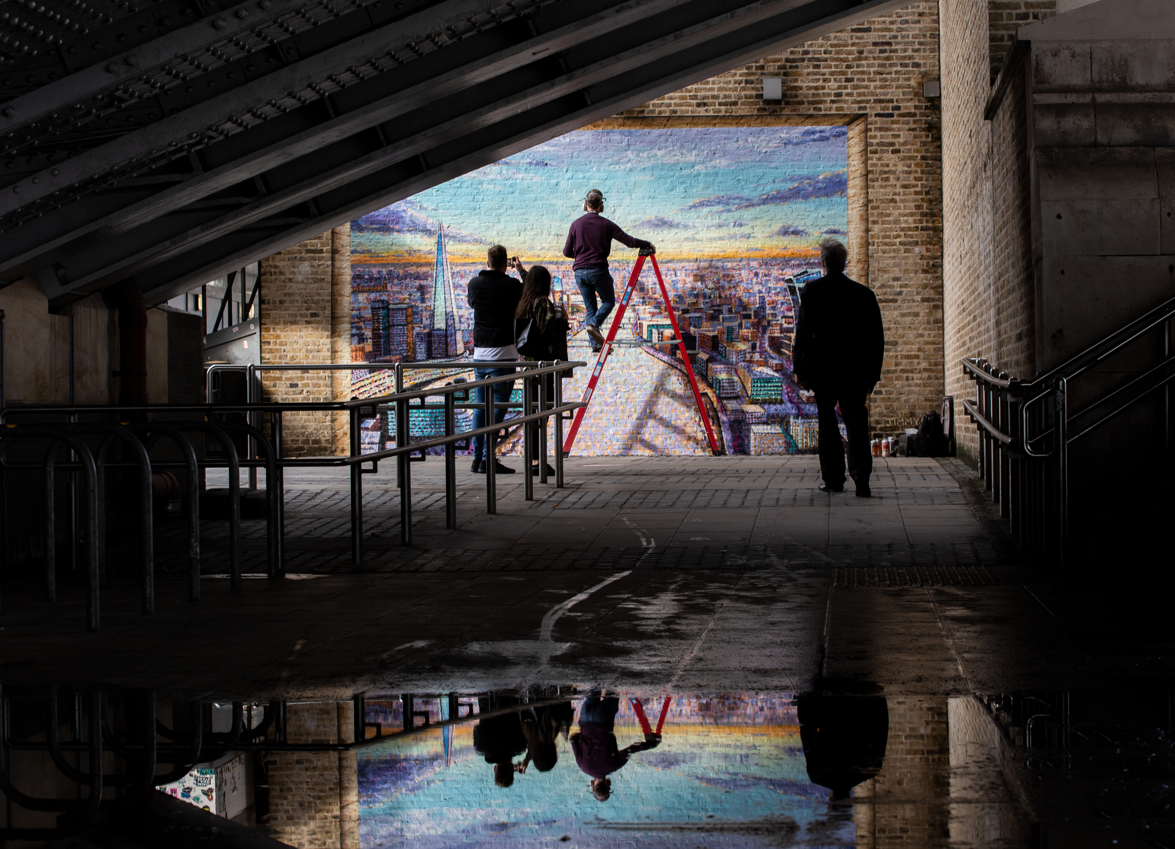 Artist Jimmy C works on his mural at Blackfriars