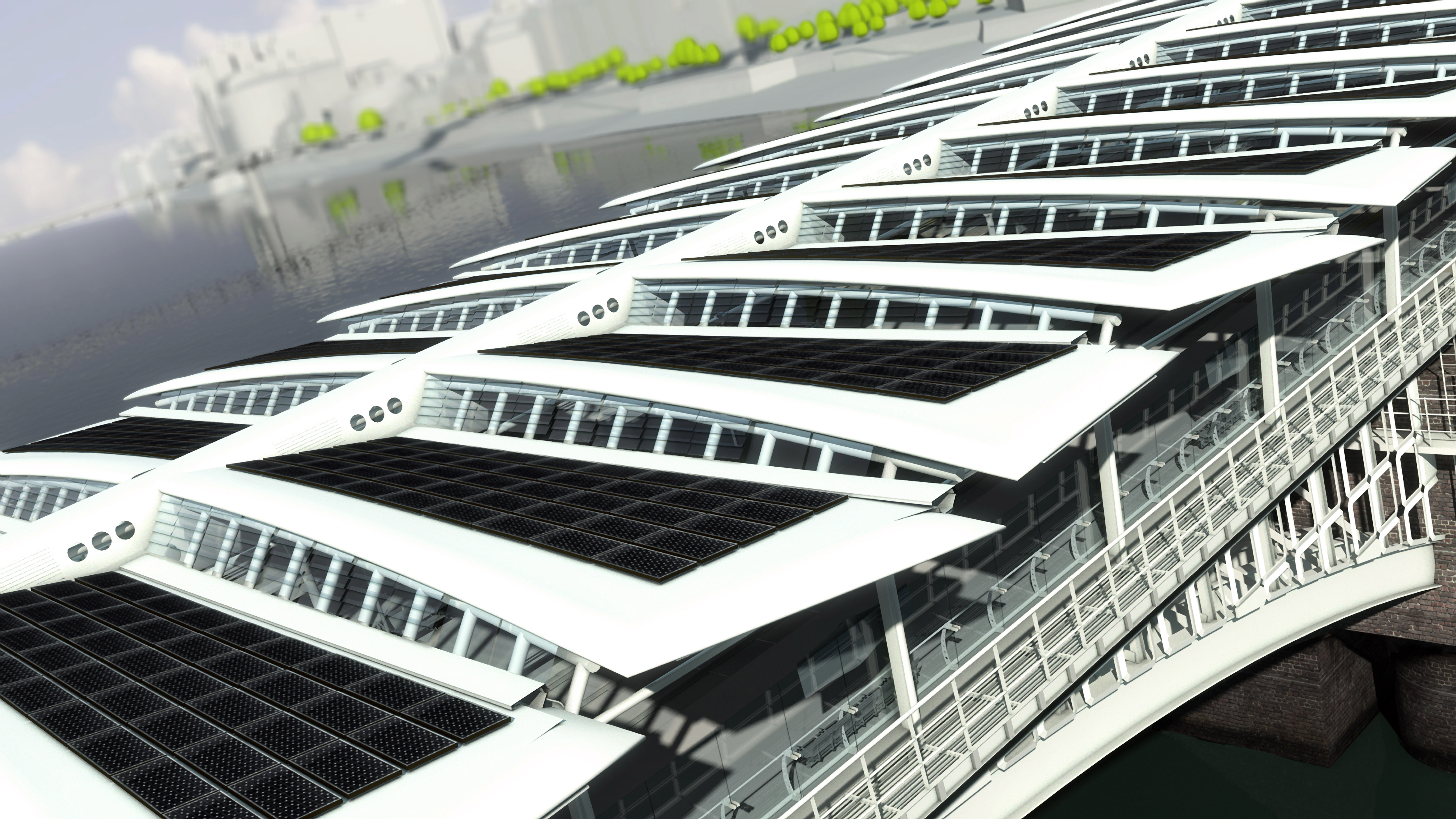 Artist's impression showing 4,000 solar panals on the roof of Blackfriars station, making it the world's largest solar bridge (part of the Thameslink Programme)