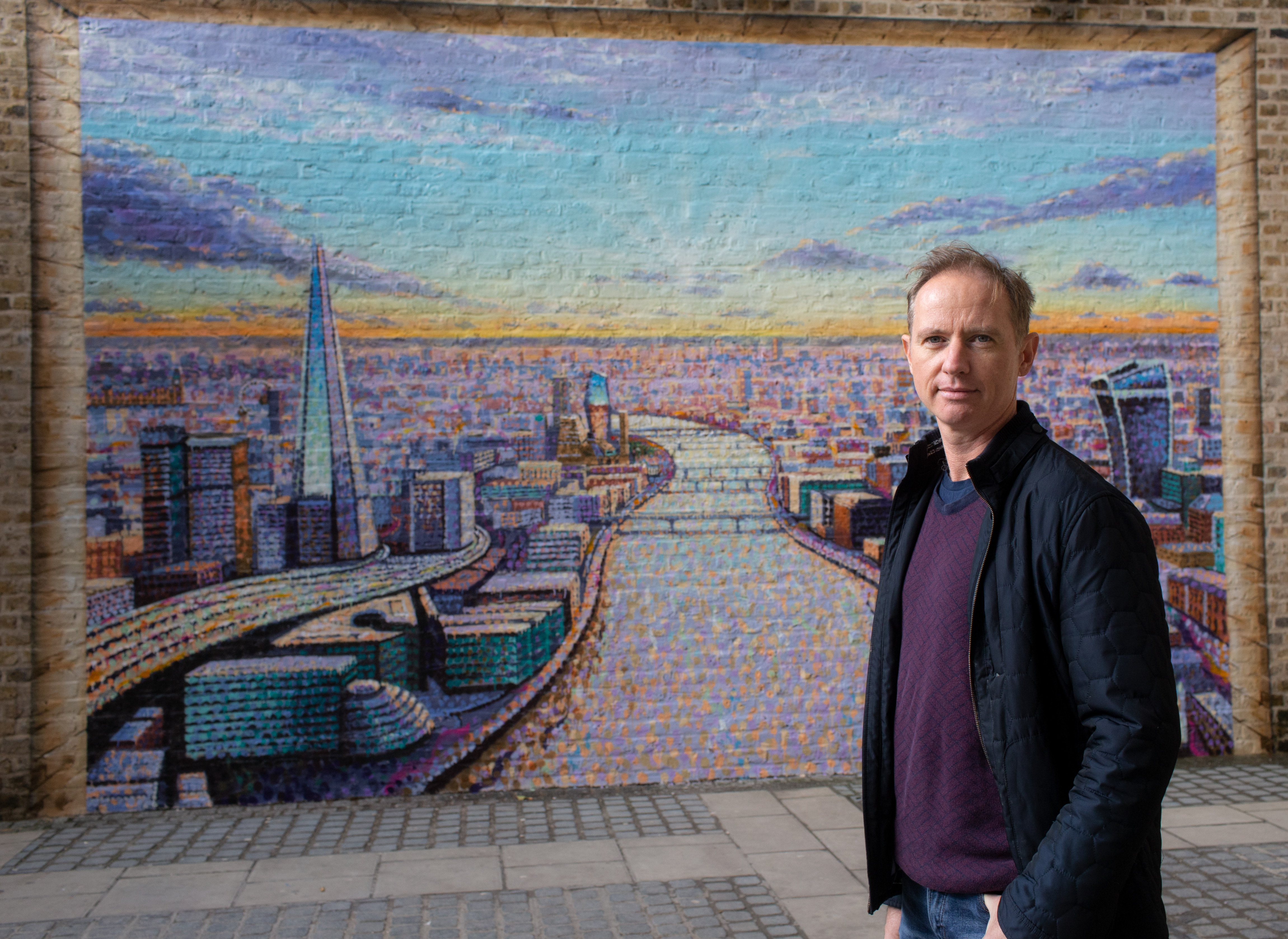 Artist Jimmy C with his work at Blackfriars