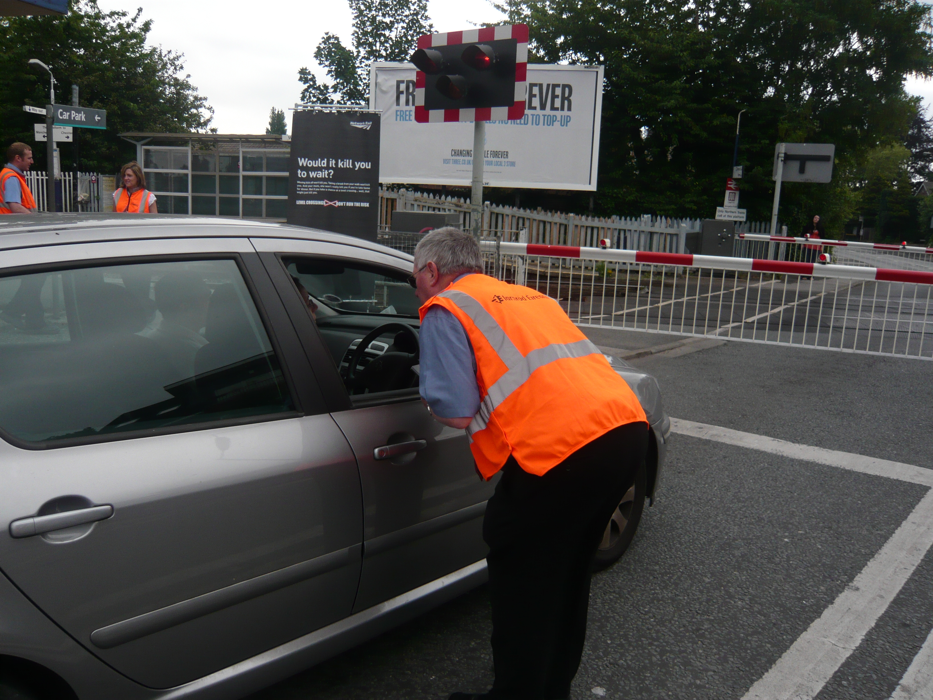 Brian Simpson MEP talking to motorists at Navigation Road LC