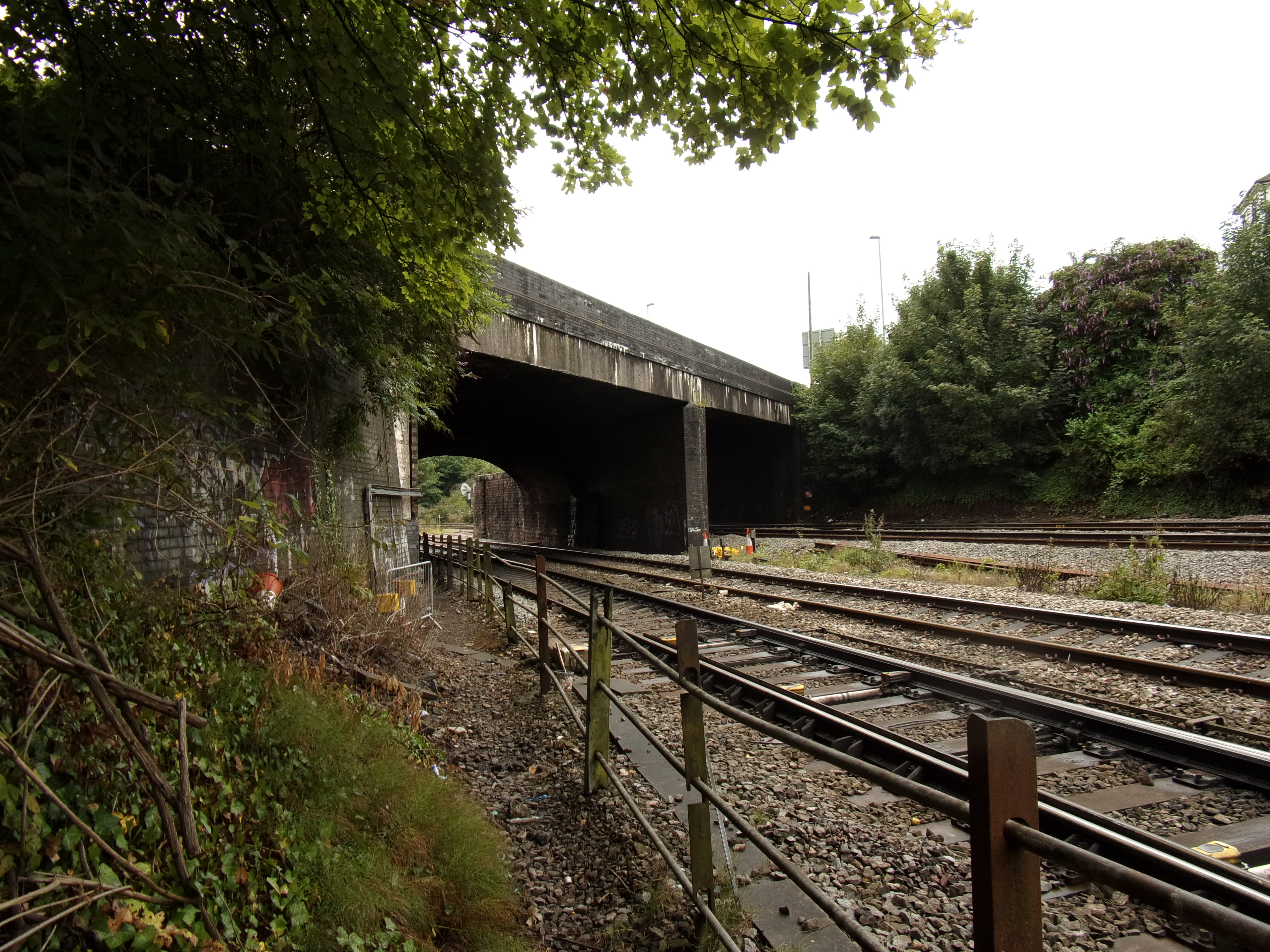 Cardiff Road bridge in Newport is being partly reconstructed to provide the extra headroom needed for the future electrification of the railway.jpg