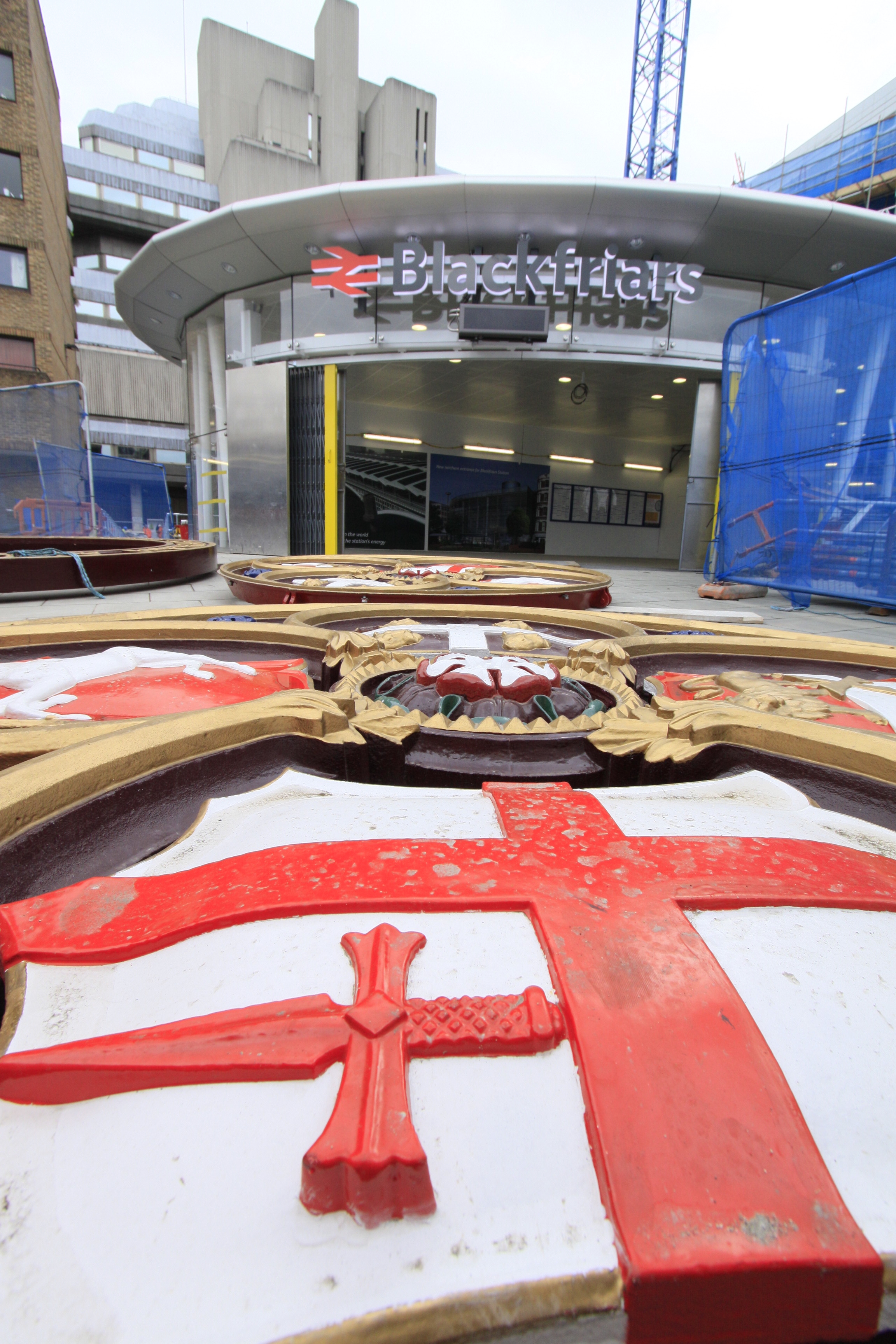 Historic cartouches return to Blackfriars station