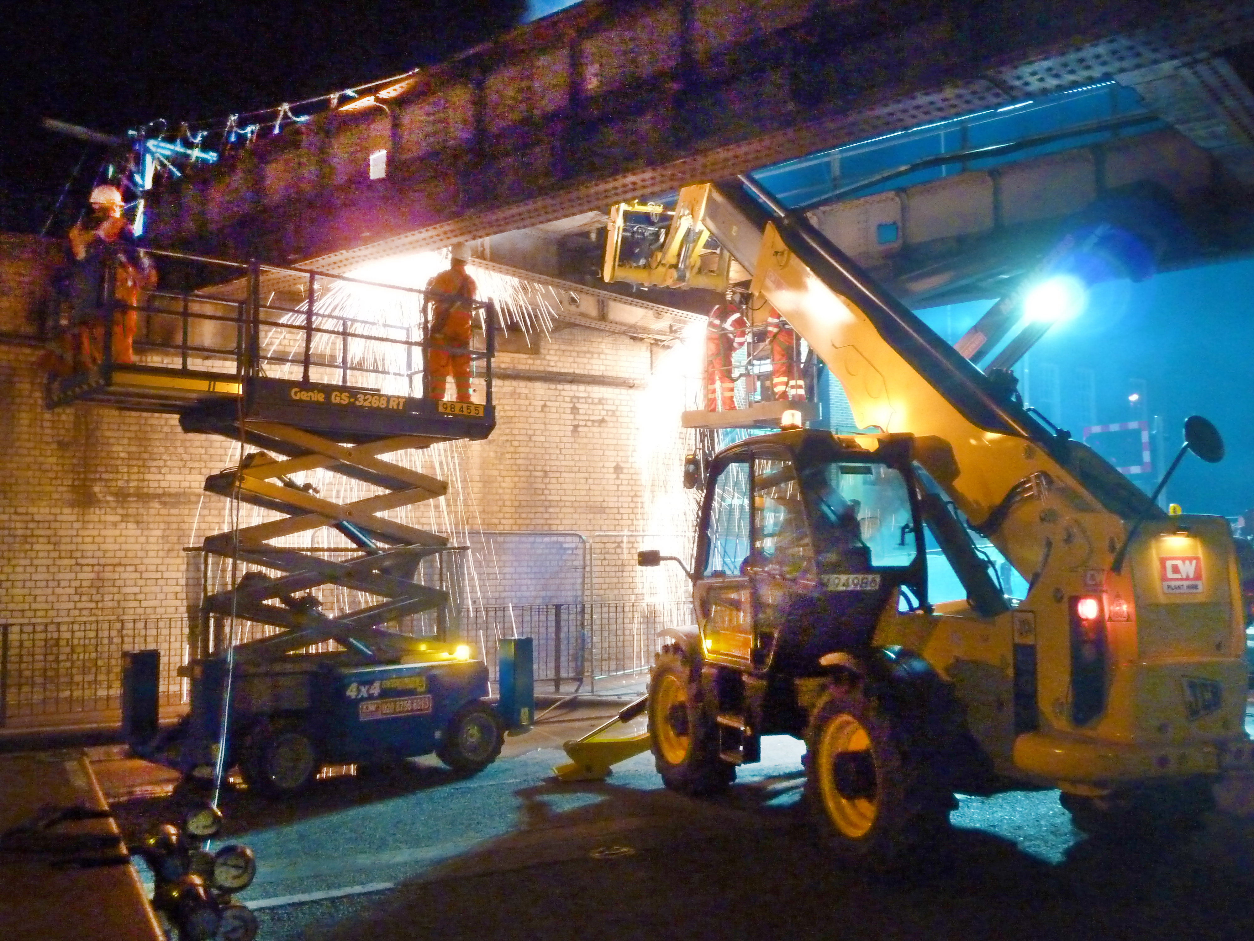 Engineers work to remove a span of Caversham Road bridge, Reading