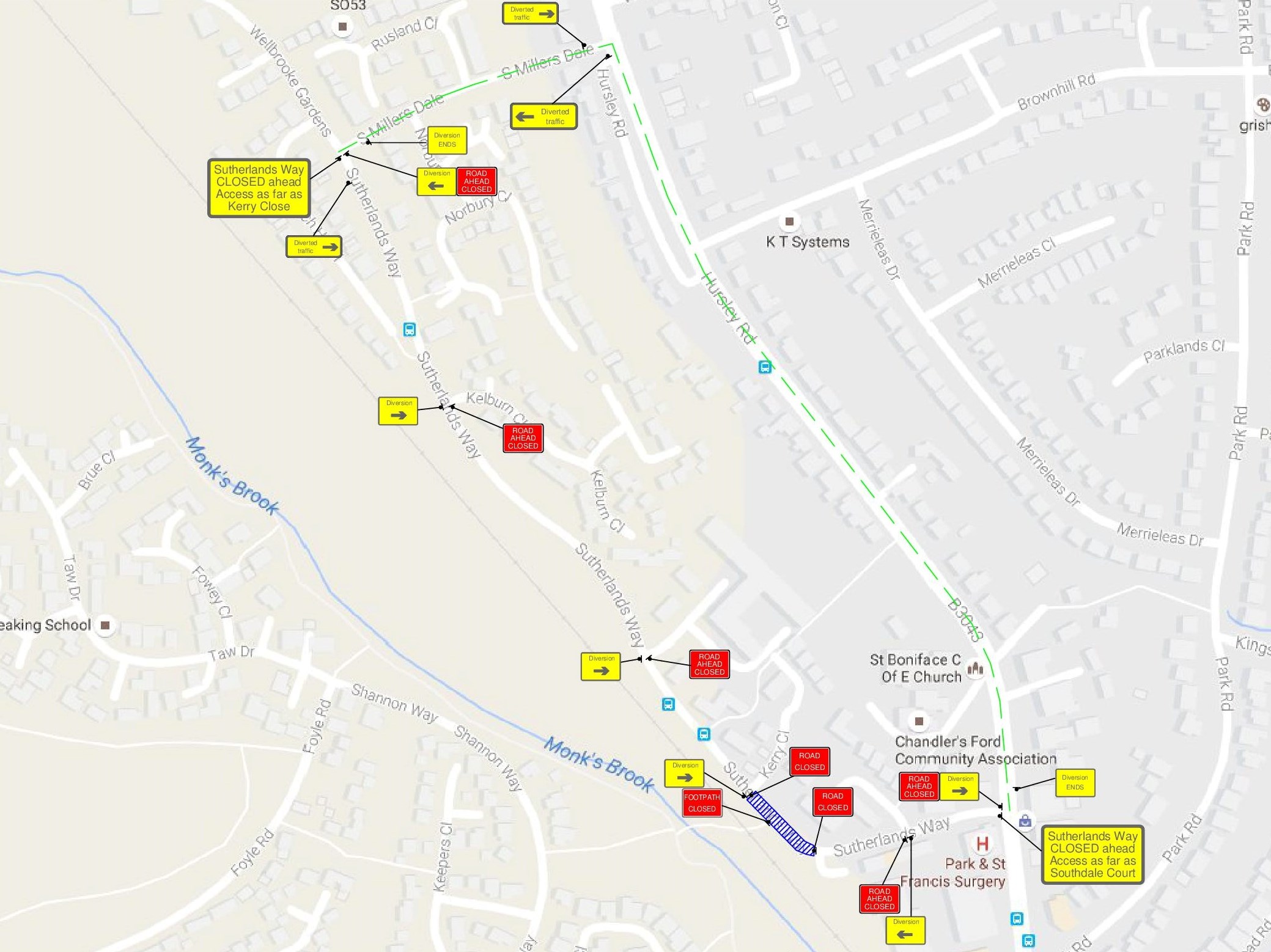 Chandler's Ford road diversion