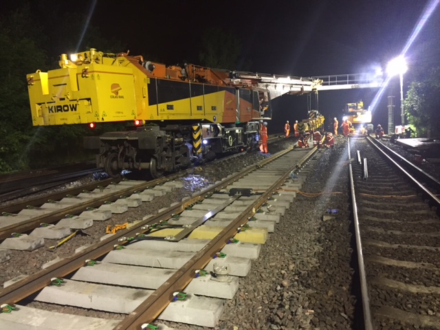 Work overnight at Chislehurst - Kirow crane lifts a track panel into place