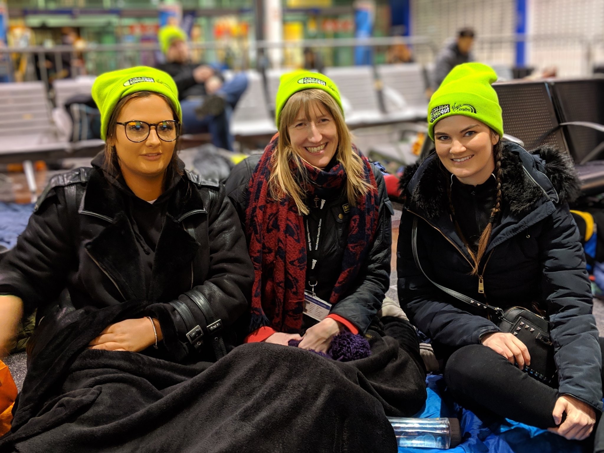 Chloe, Margaret and Beth who took part in the Railway Children sleep out at Manchester Piccadilly.jpg
