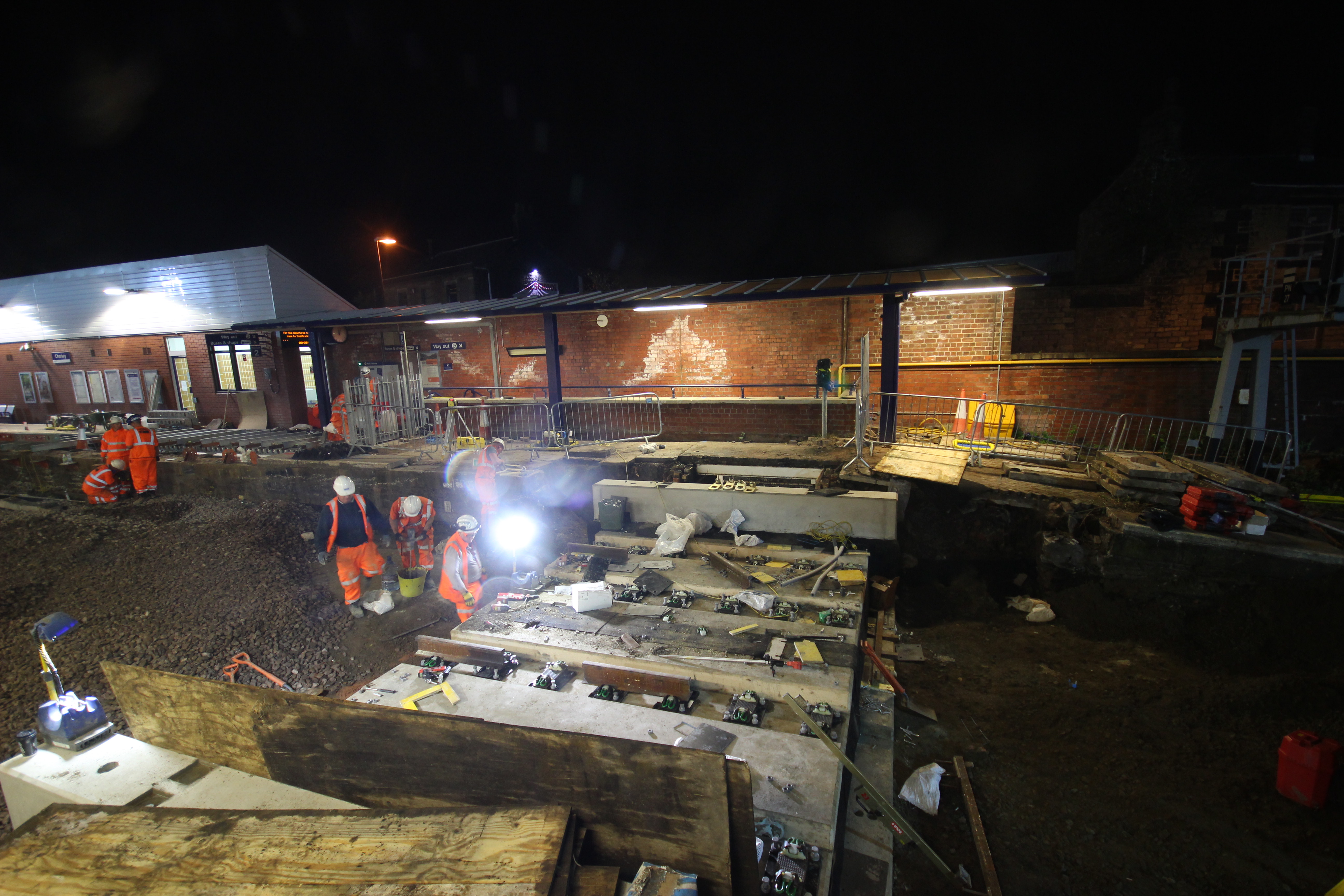 Engineers work through the night to replace the subway under the tracks at Chorley station