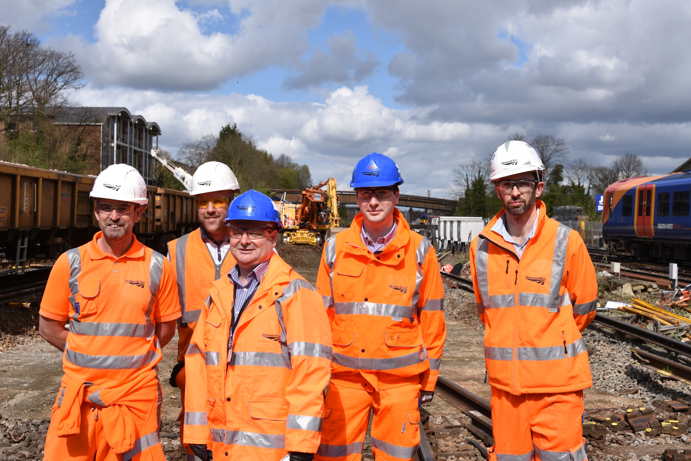 Cllr Paul Spooner and Cllr Matt Furniss join Network Rail's engineers on site at Guildford station