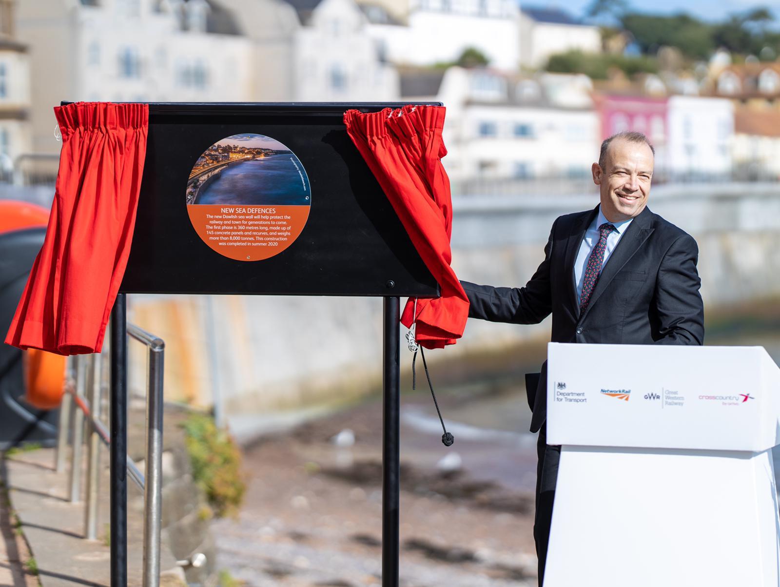 Rail Minister Chris Heaton-Harris today (25 September) officially opened the first section of the new Dawlish sea wall