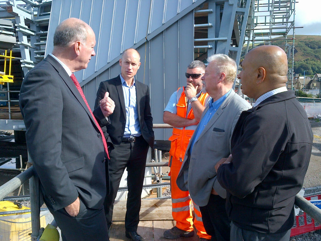 David Rees AM and Stephen Kinnock MP with Network Rail workers at Port Talbot Parkway station.jpg