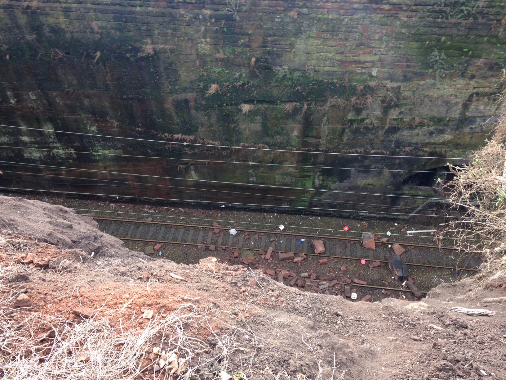 Debris on the line from the collapsed wall at Liverpool Lime Street