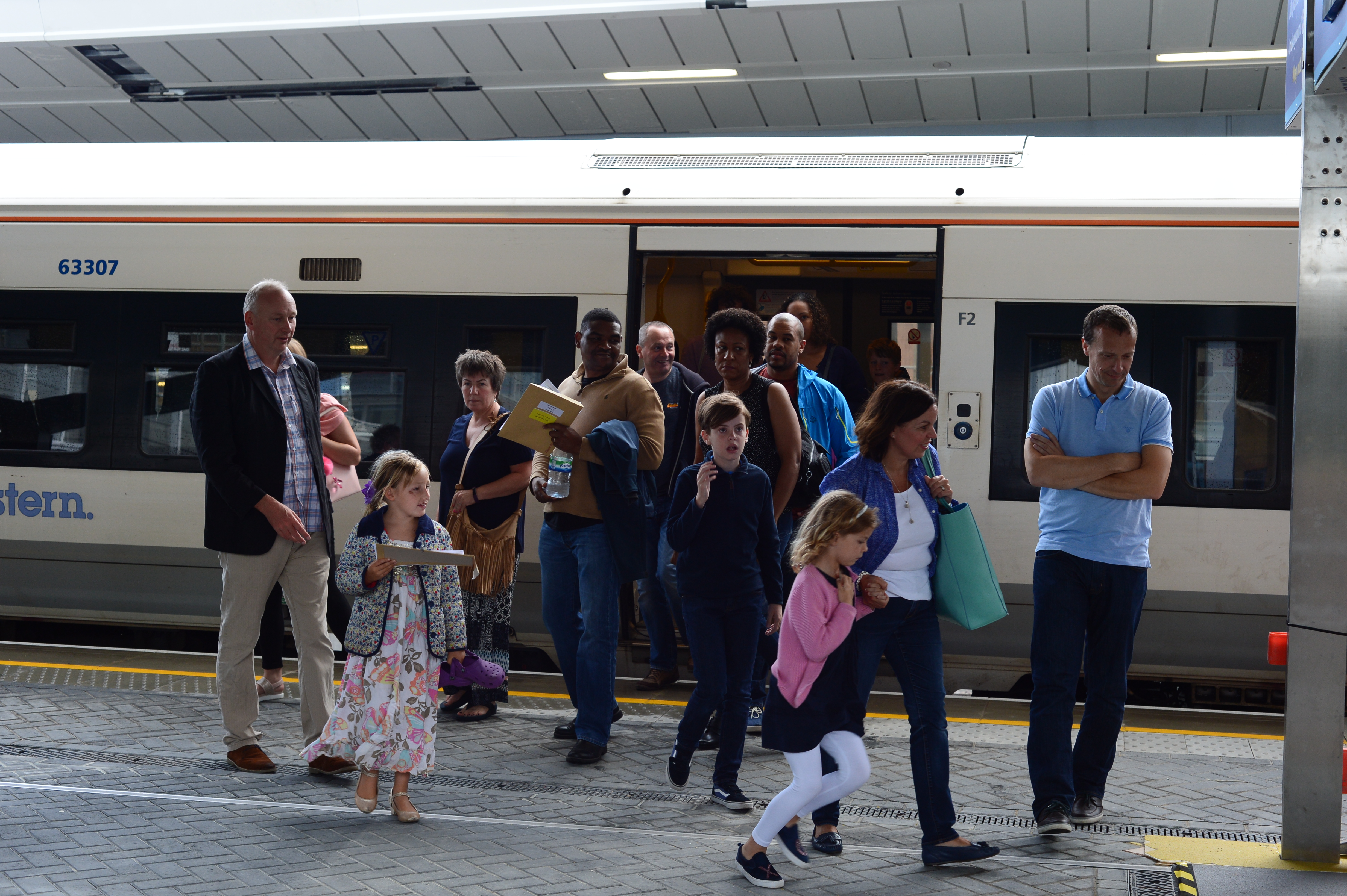 Families arrive on the newly rebuilt platform 8 at London Bridge station.