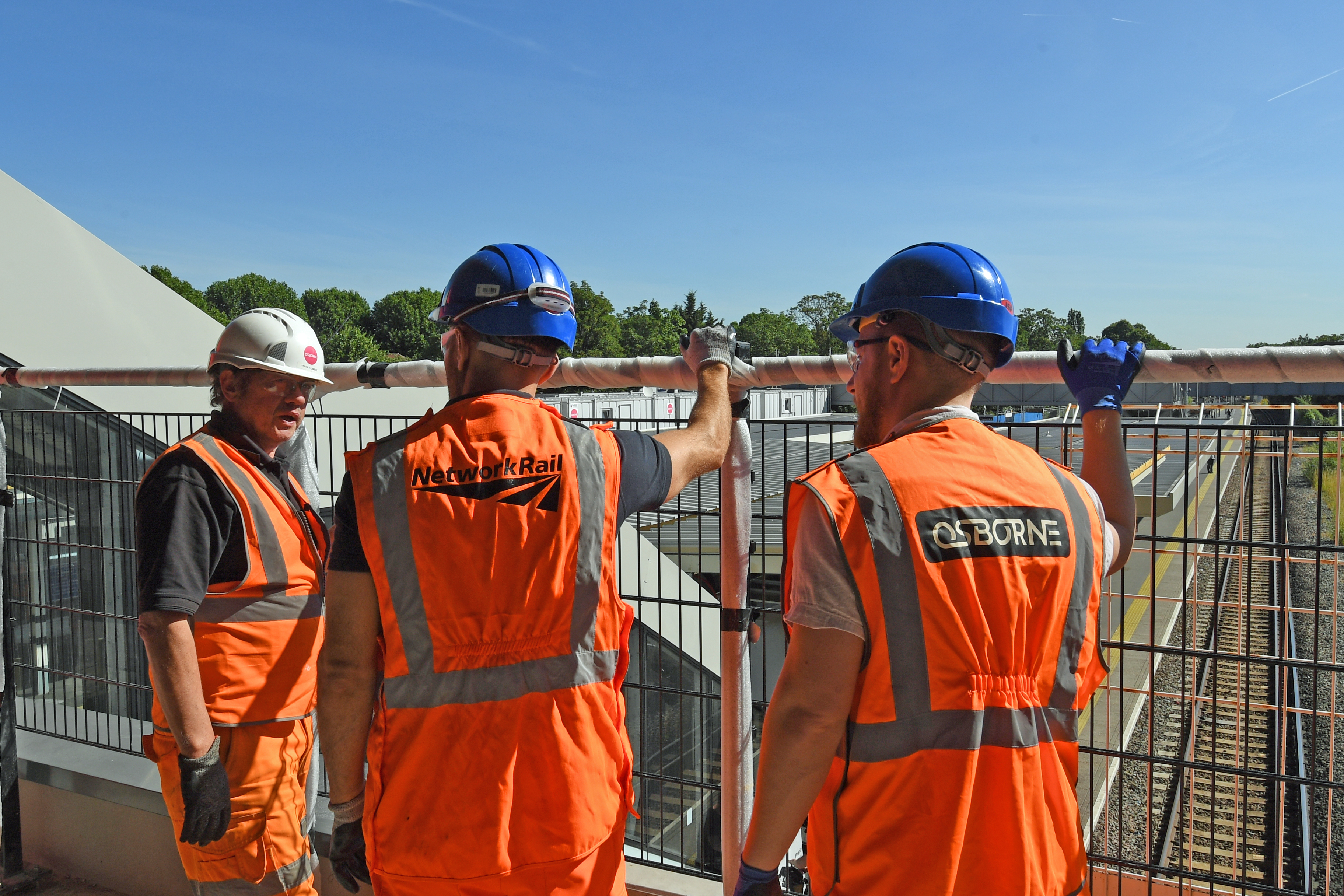 Engineers briefing on viewing deck over railway - Twickenham station