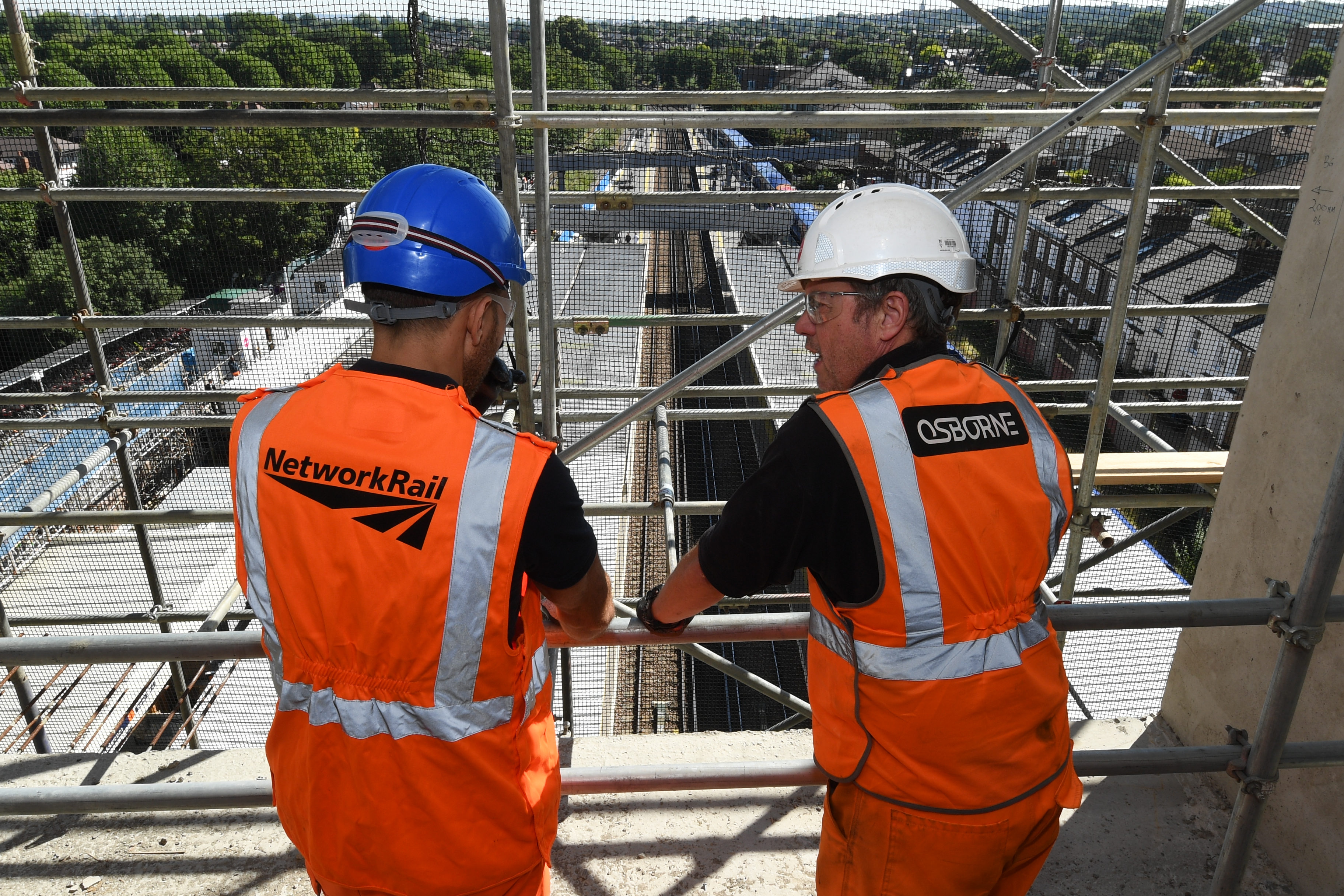 Network Rail and Osborne engineers on worksite above railway