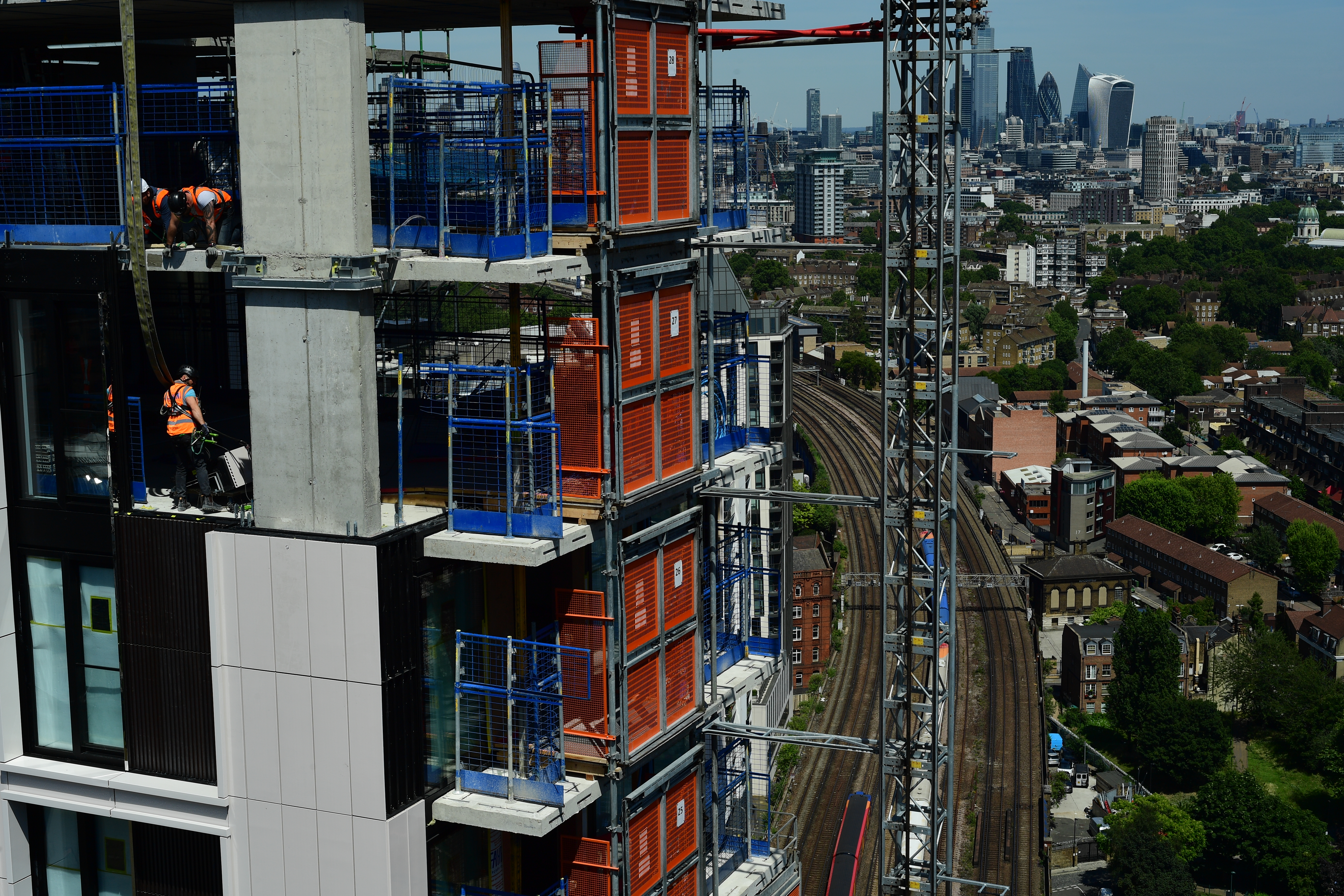 London apartments under construction by the railway - working at height