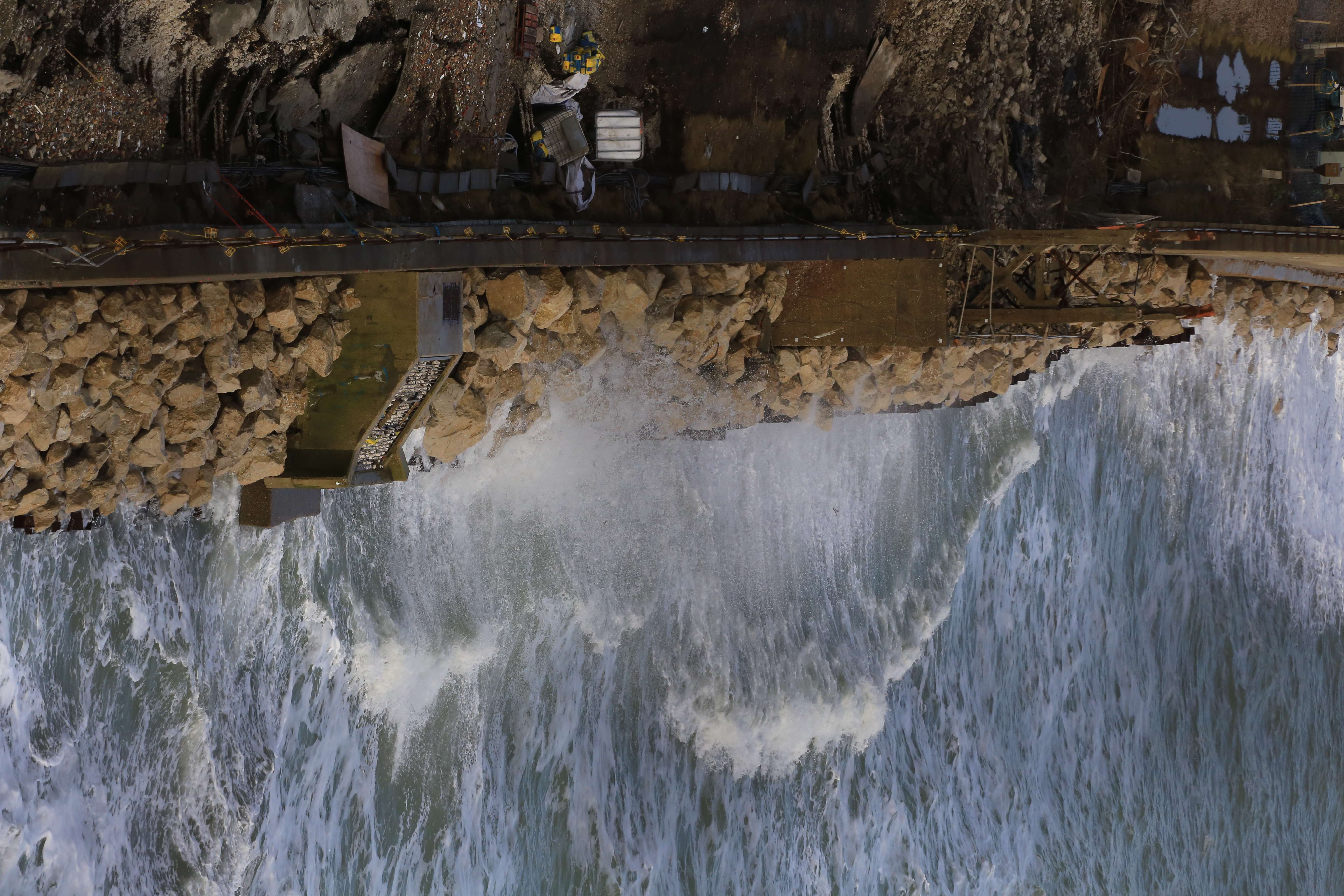 Waves batter new rock armour at Dover